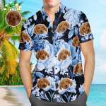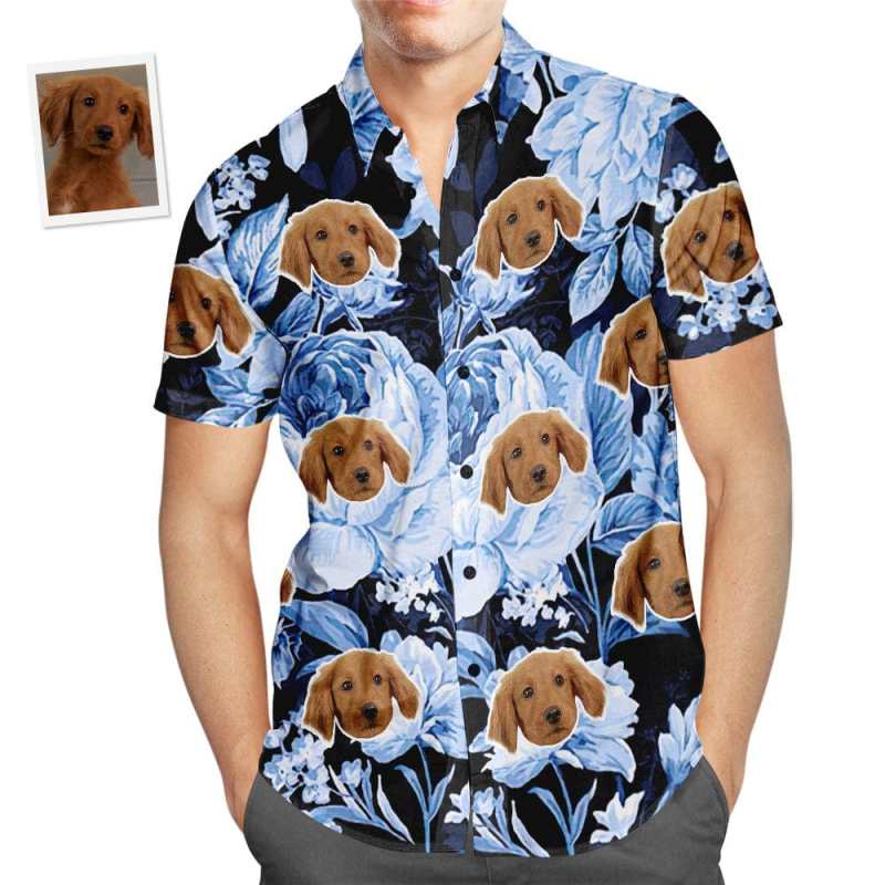カスタムフェイスアロハシャツトロピカルブルーレトロフラワーメンズ人気総柄ハワイアンビーチシャツホリデーギフト