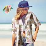 本物のレディース アロハシャツにあなたの顔を全面にプリントします。素晴らしいアイデアであなたを元気づけたり、愛する人への愛とサポートを示したりしましょう。まずは写真をアップロードしてください。私たちのデザイン チームは、アップロードされた写真からあなたの顔を完璧に切り抜くために一生懸命努力します。ポリエステル95%、スパンデックス5%で作られており、軽量で快適です。完璧なグラフィックを実現するために、各パネルを切り取って縫い合わせます。