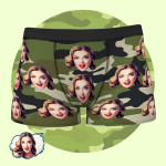 カスタムフェイスメンズボクサーブリーフパーソナライズされた写真グリーン迷彩下着パーソナライズされたギフトボクサーブリーフ彼のための顔