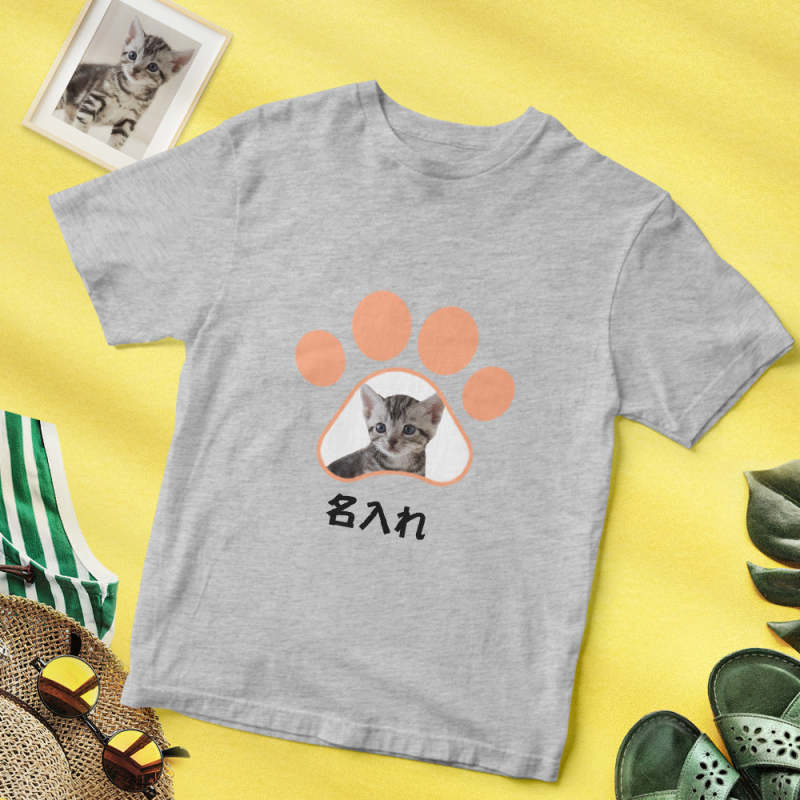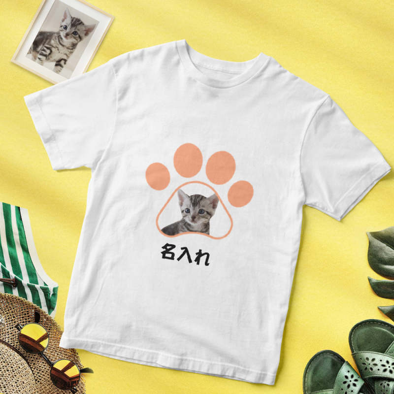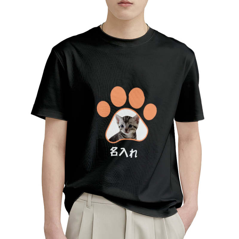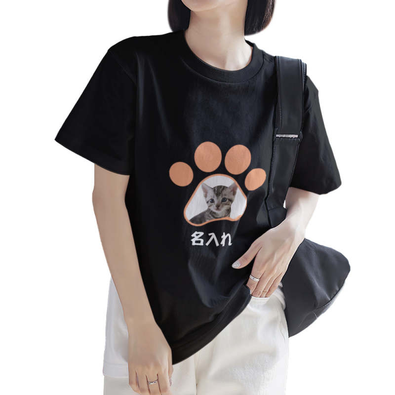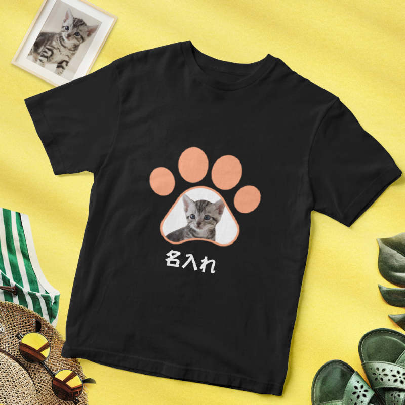 カスタムフォトTシャツ - 写真と名前入れ可能なペット写真T-SHIRTプレゼント - かわいい猫の爪