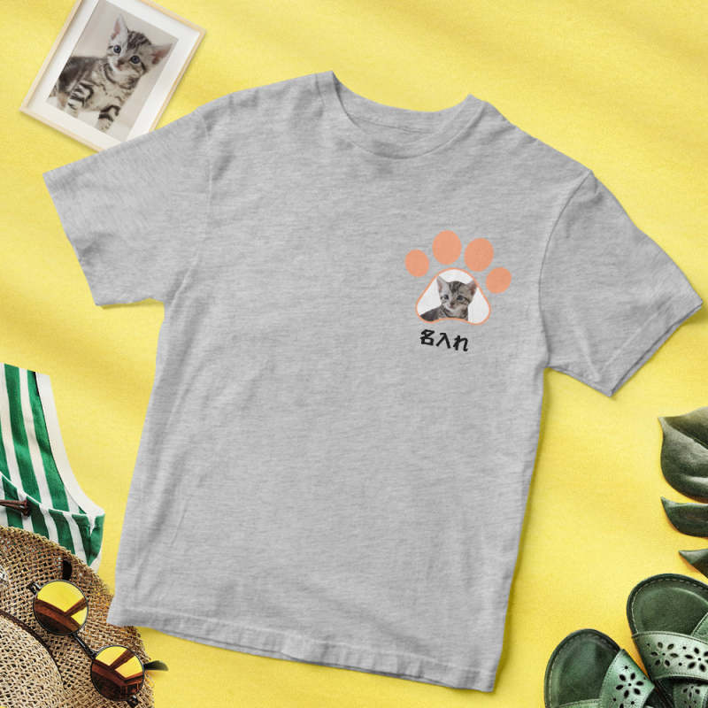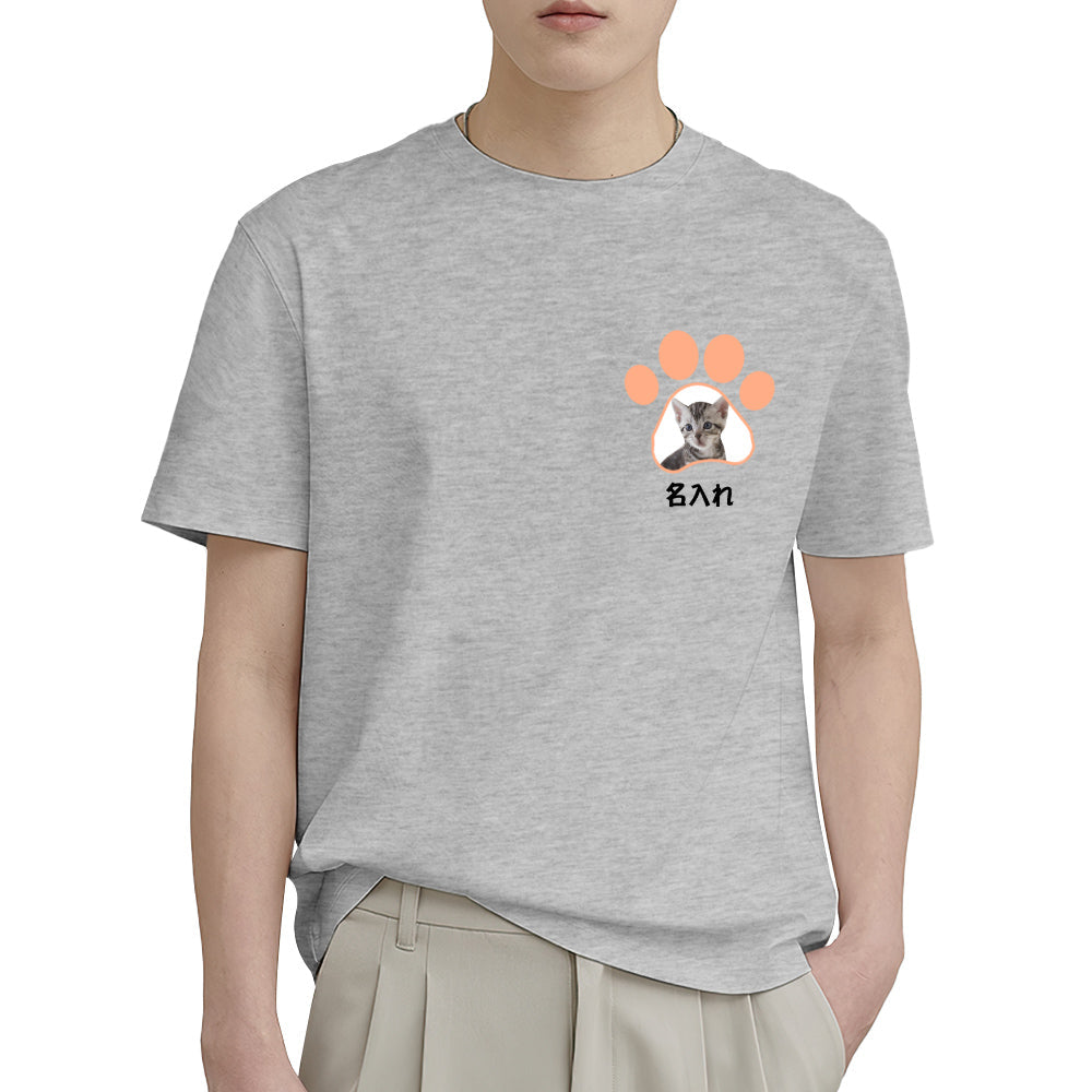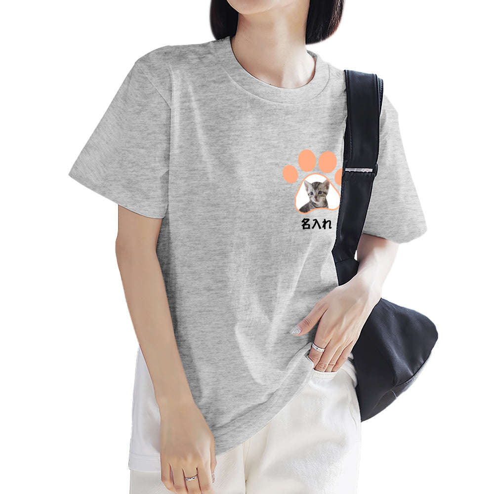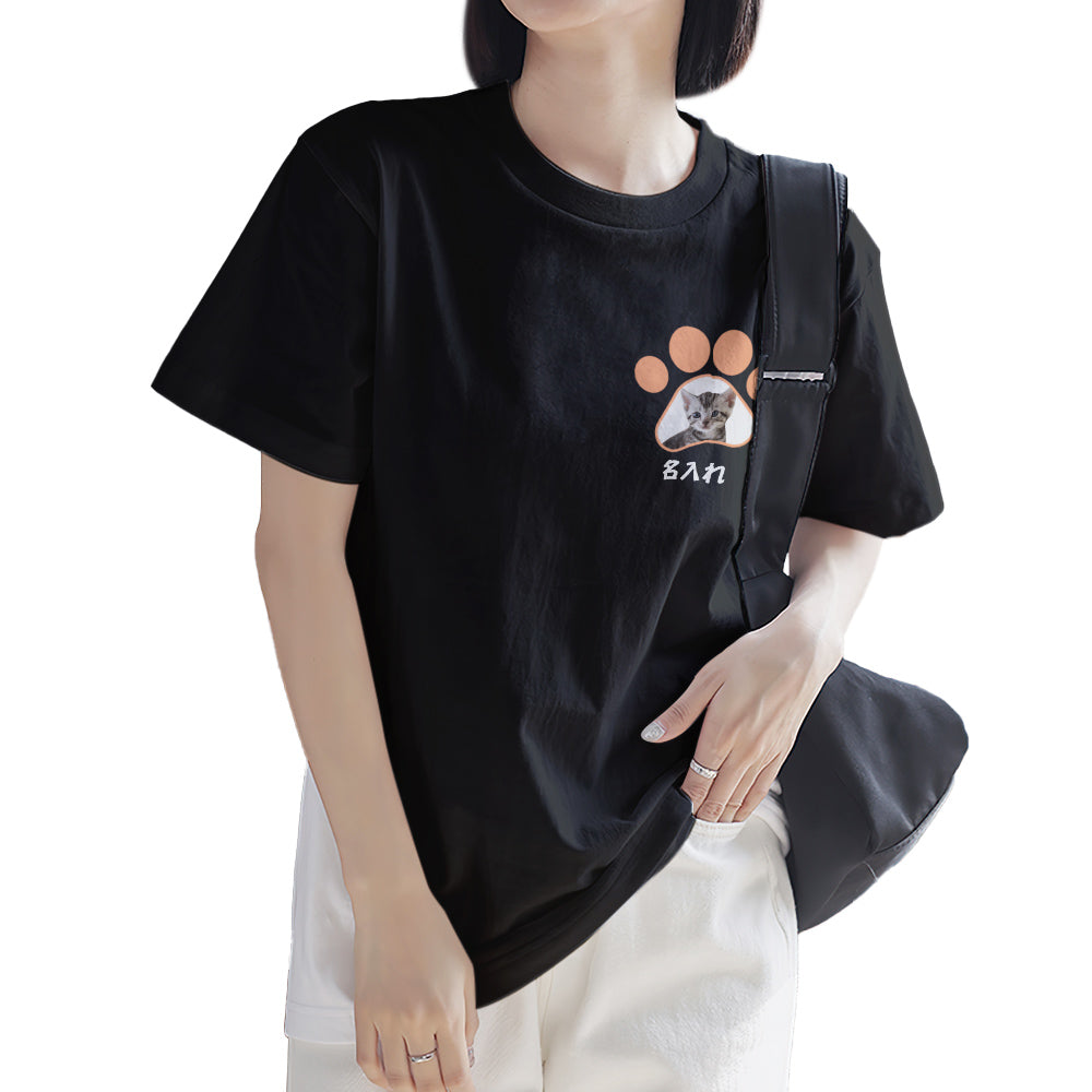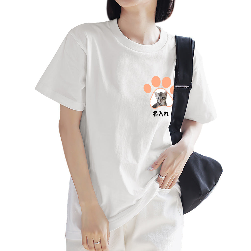 カスタムフォトTシャツ - 写真と名前入れ可能なオリジナルペット写真T-SHIRTプレゼント - かわいい猫の爪