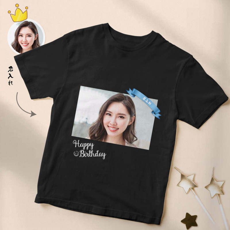 カスタムフォト誕生日Tシャツ - 写真や名入れ可能なオリジナル写真T-SHIRTプレゼント