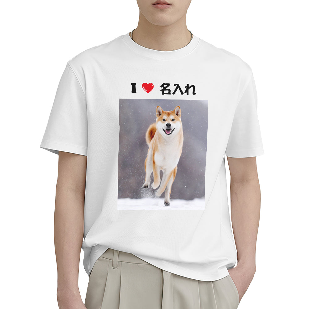 カスタムフォトTシャツ - 写真と名前入れ可能なペット写真T-SHIRTプレゼントI♥○○