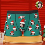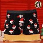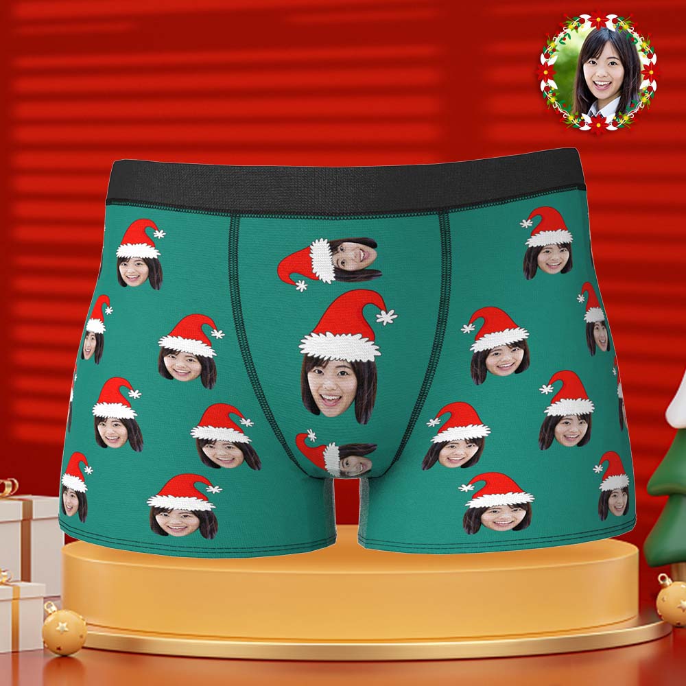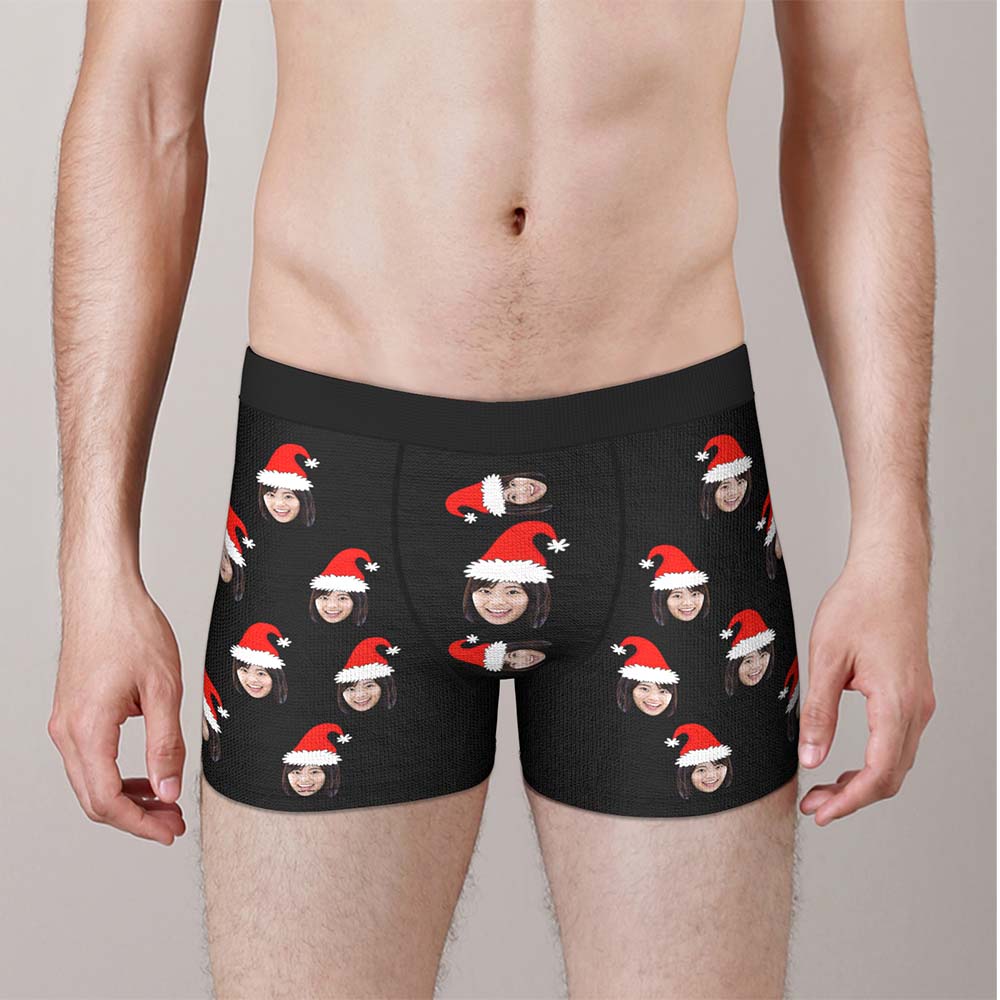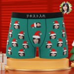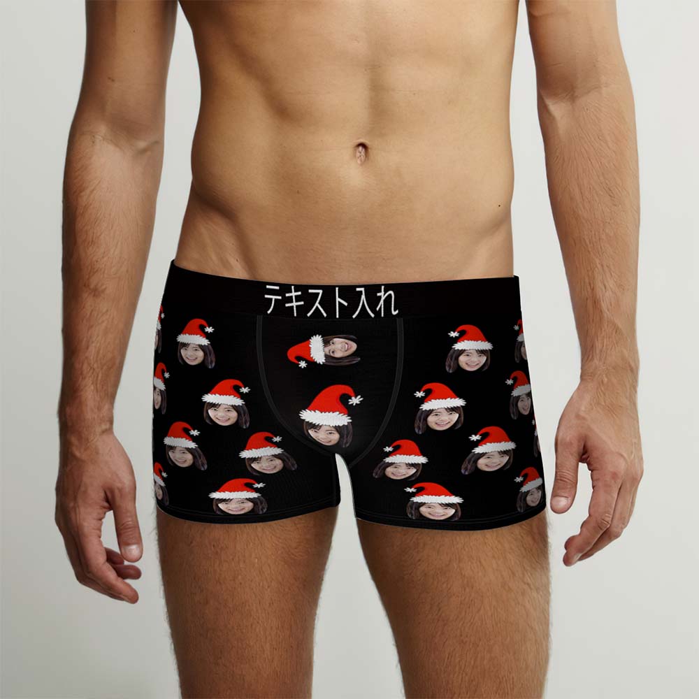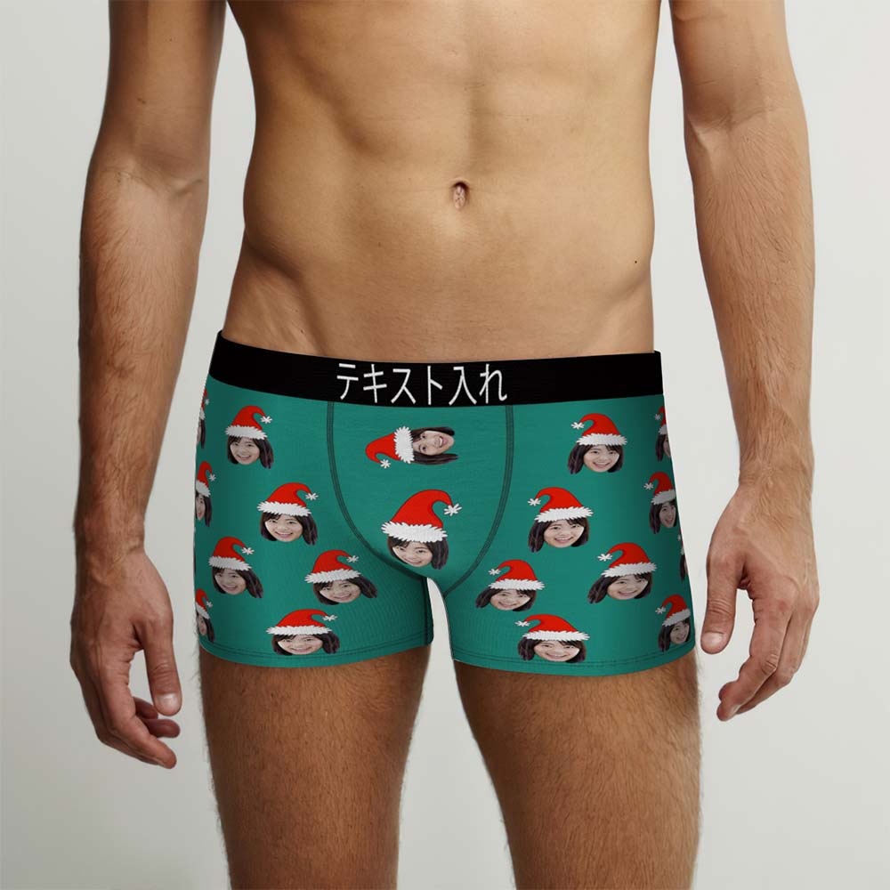 カスタムフォトボクサーパンツ-写真入れ可能なオリジナルクリスマス顔下着ショーツギフト-おもしろサンタ帽子柄