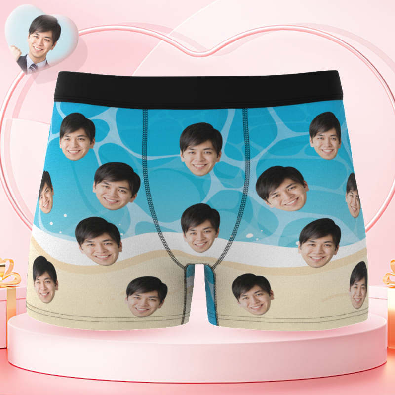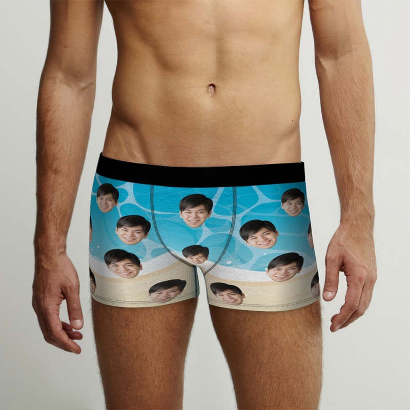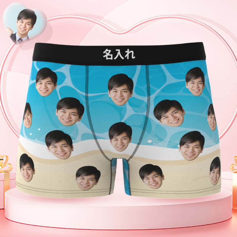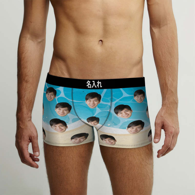 カスタムフォトボクサーパンツ-写真入れ可能なオリジナル顔下着ショーツギフト-海の波