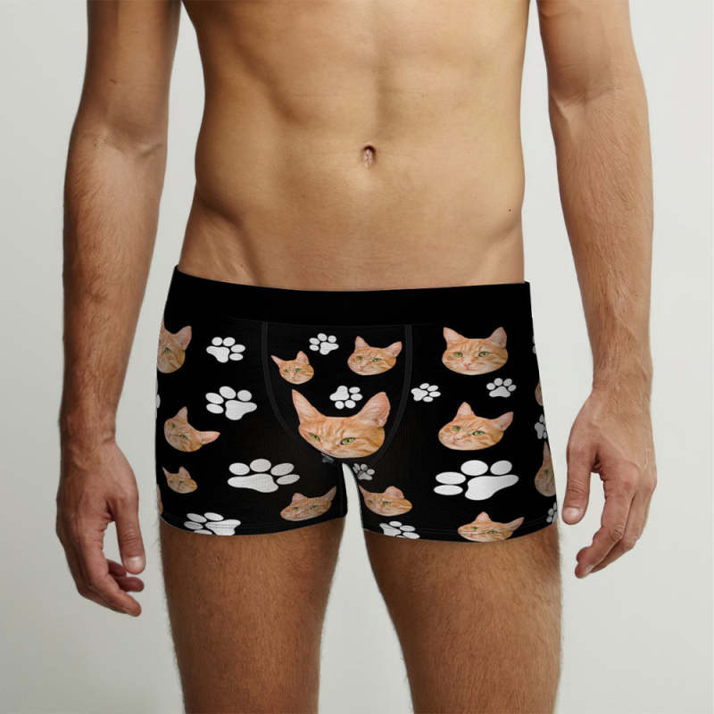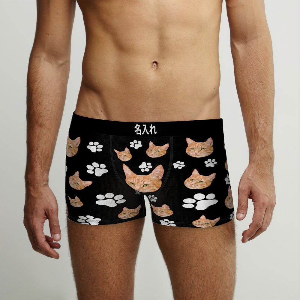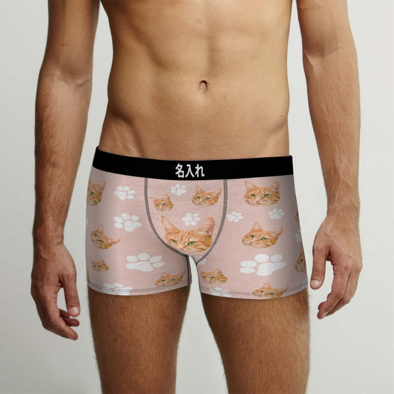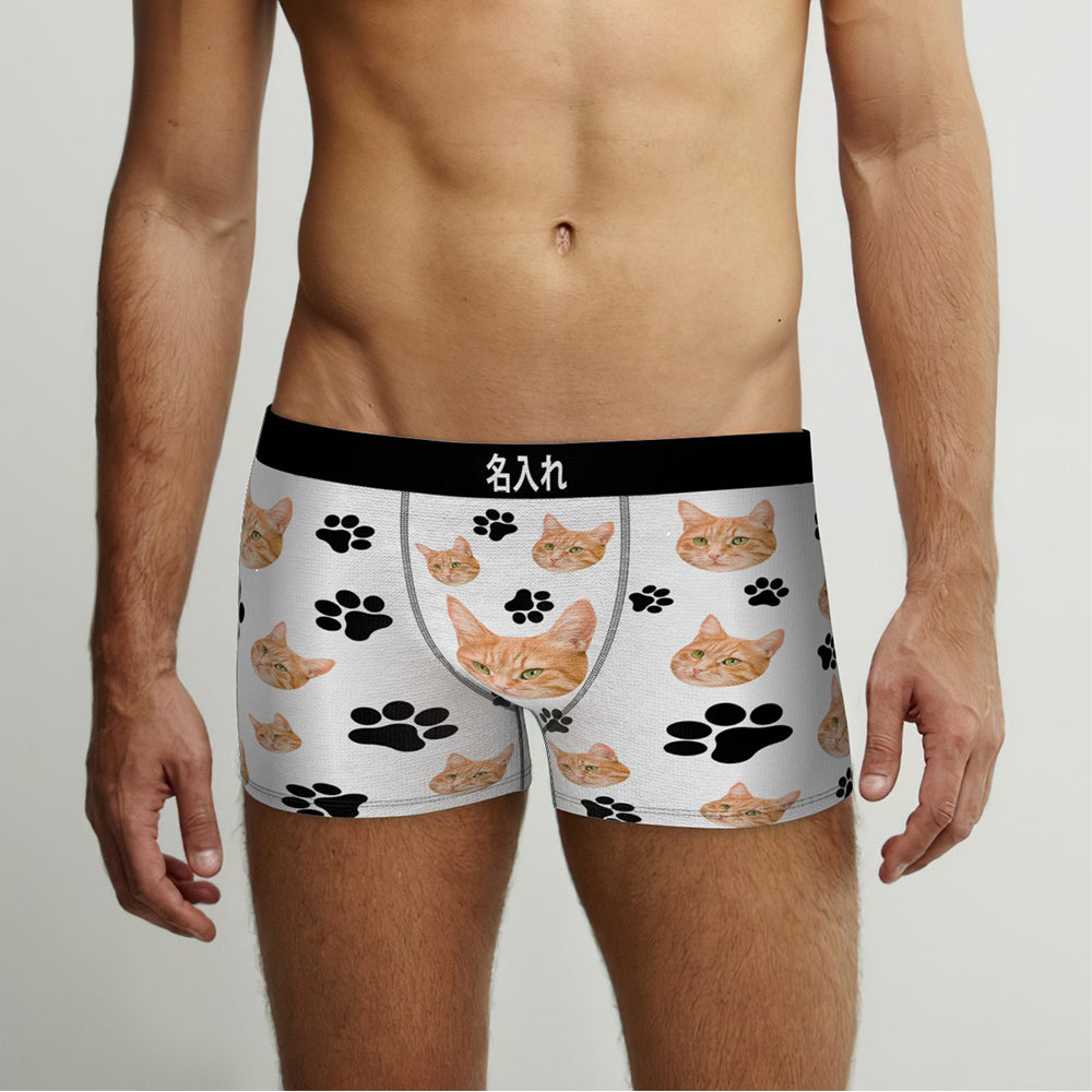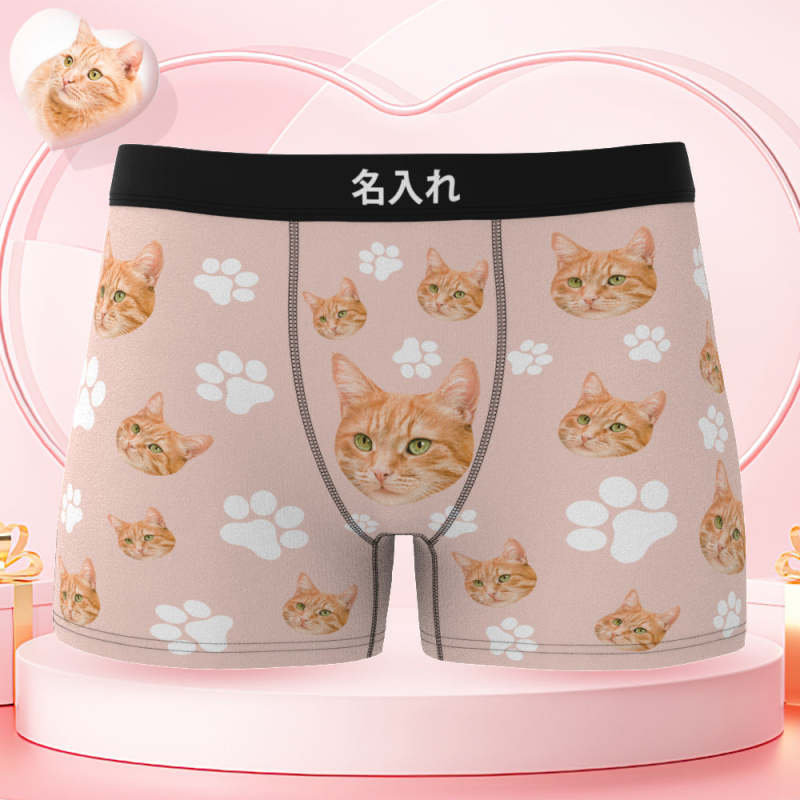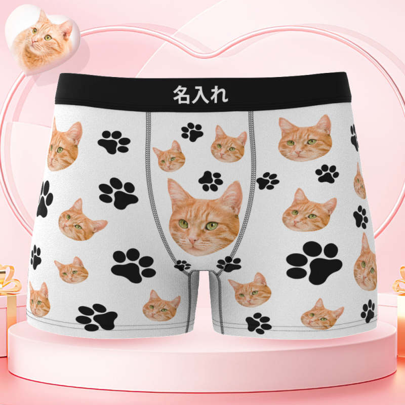 カスタムフォトボクサーパンツ-可愛いペット写真入れ可能なオリジナル顔下着ショーツギフト-可愛い爪柄