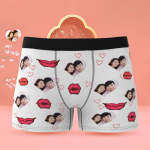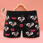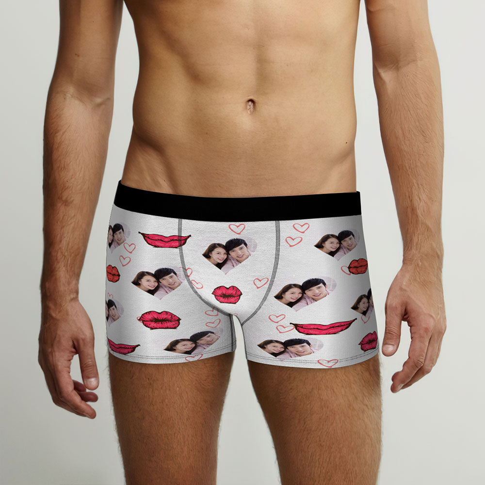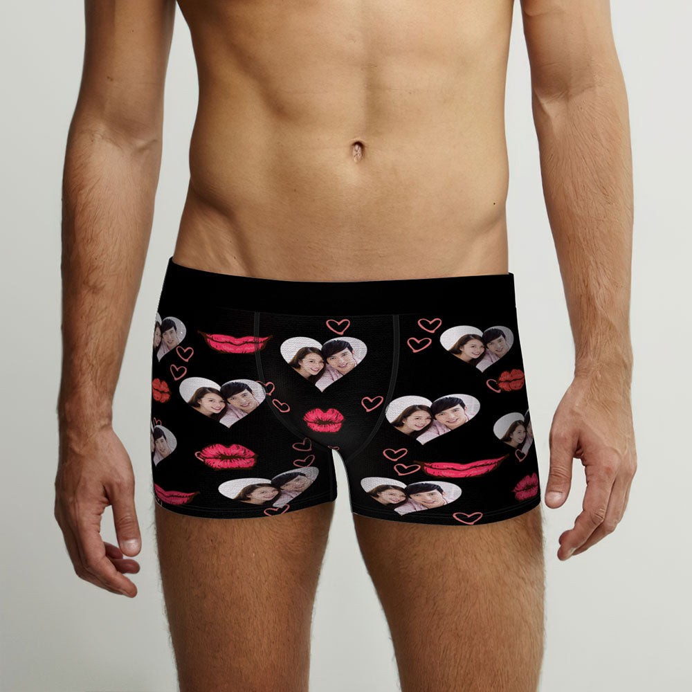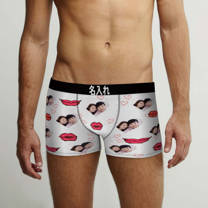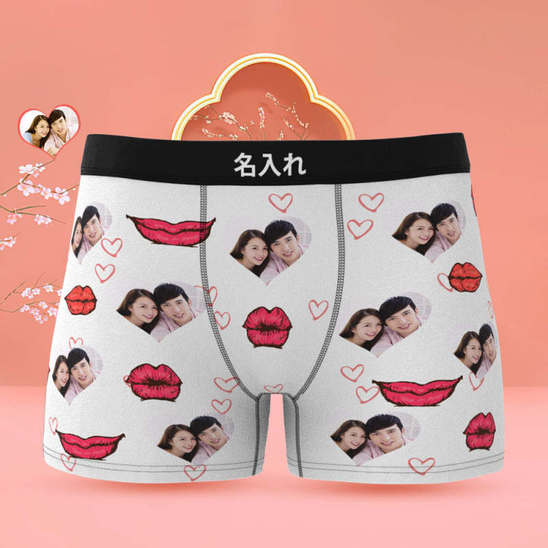 カスタムフォトボクサーパンツ-写真入れ可能なオリジナル顔下着ショーツギフト-ハート形の写真とセクシーな唇柄