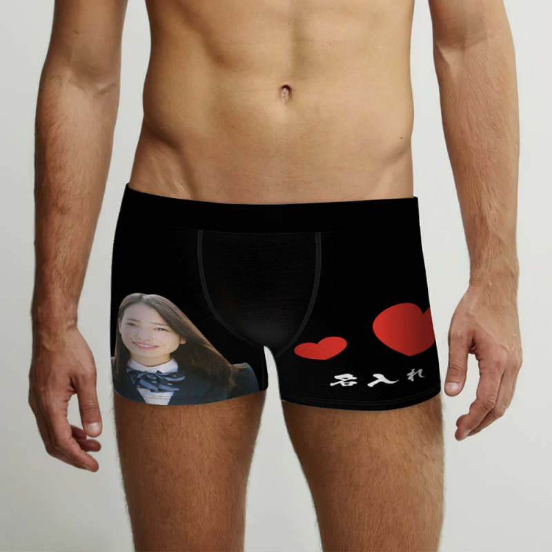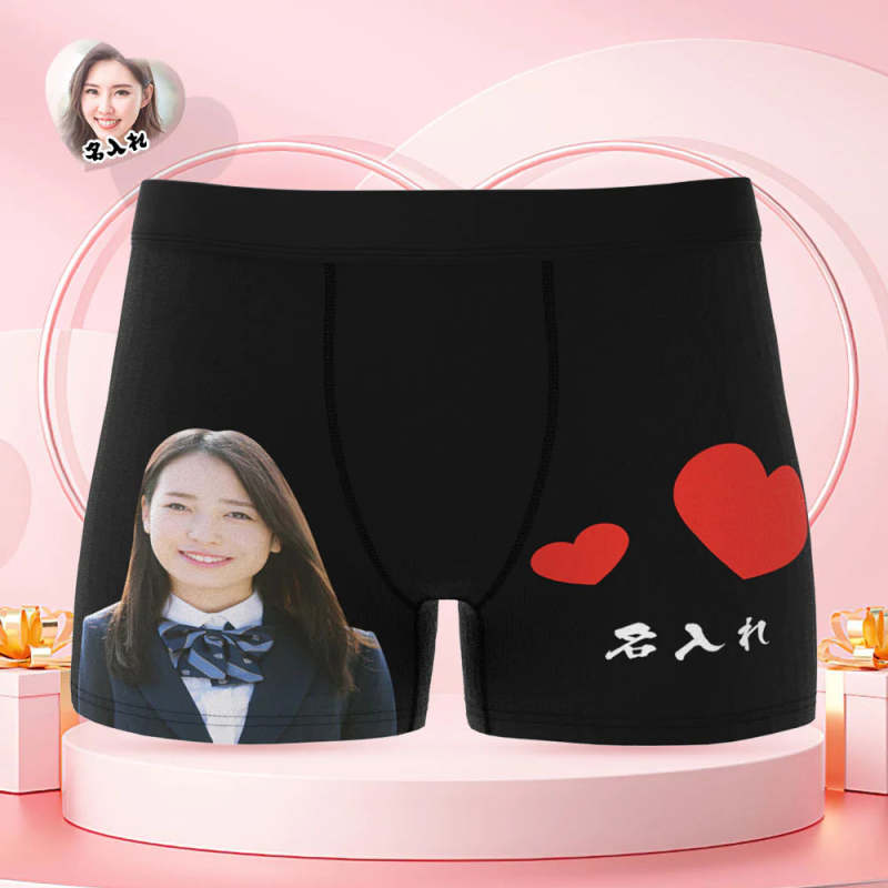 カスタムフォトボクサーパンツ-写真と名入れ可能なオリジナルバレンタイン顔下着ショーツギフト-ハート柄