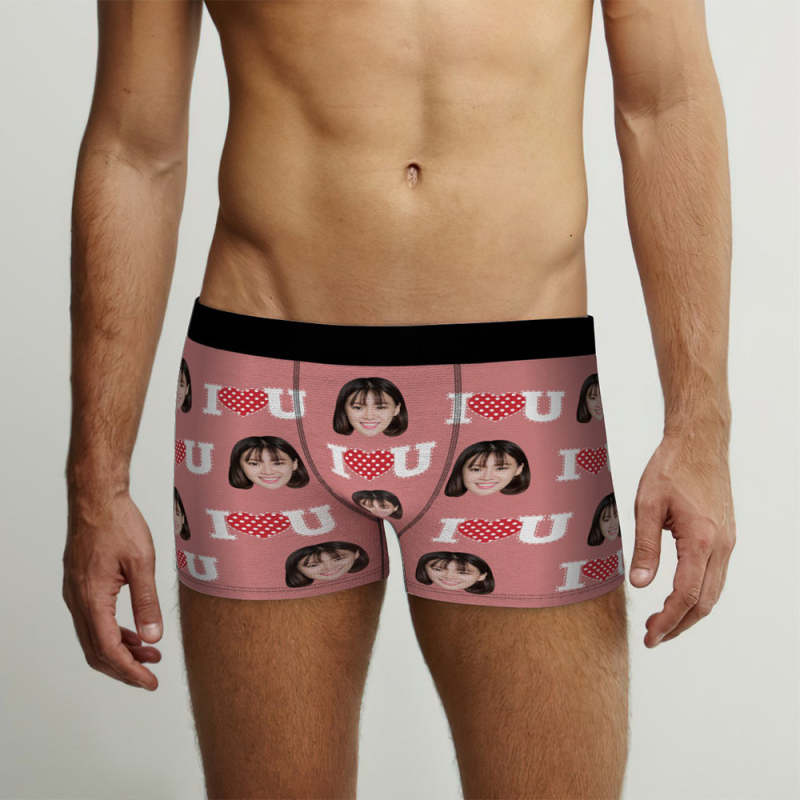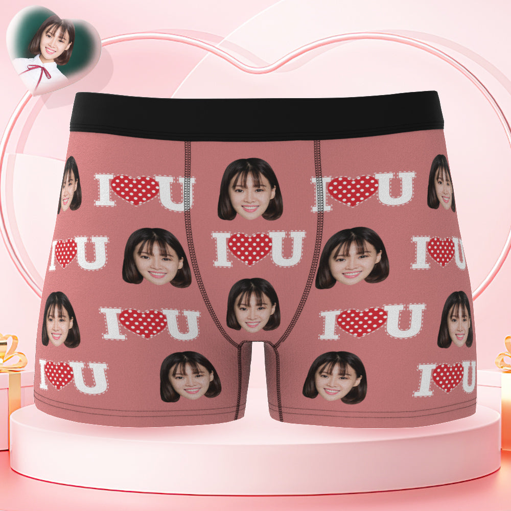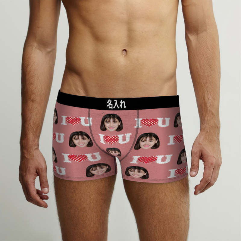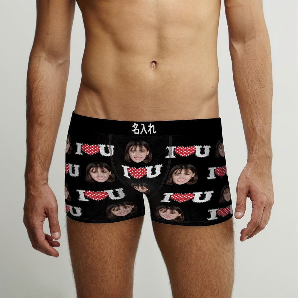 カスタムフォトボクサーパンツ-顔の写真入れ可能なオリジナル顔下着ショーツギフト-可愛いハート柄