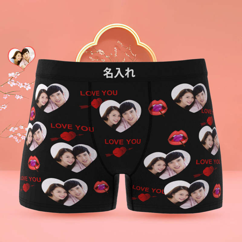 カスタムフォトボクサーパンツ-写真入れ可能なオリジナル顔下着ショーツギフト-ロリポップ柄