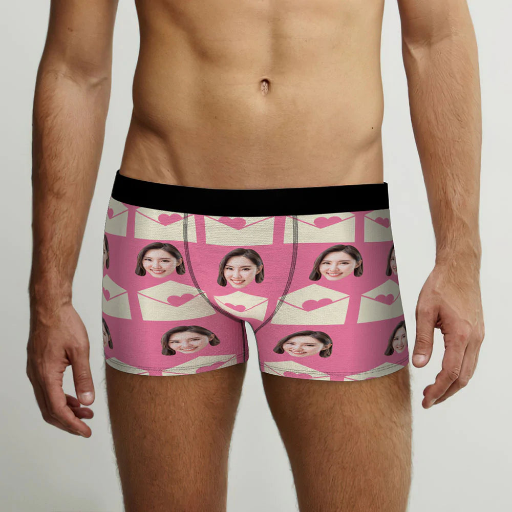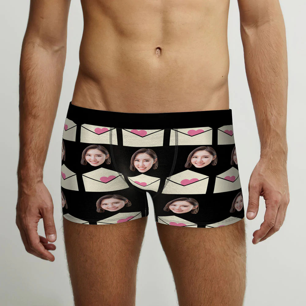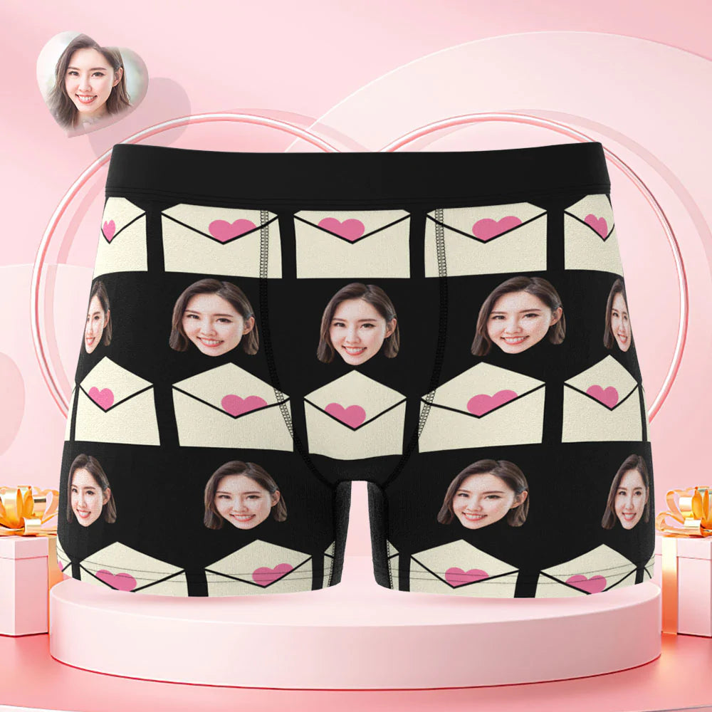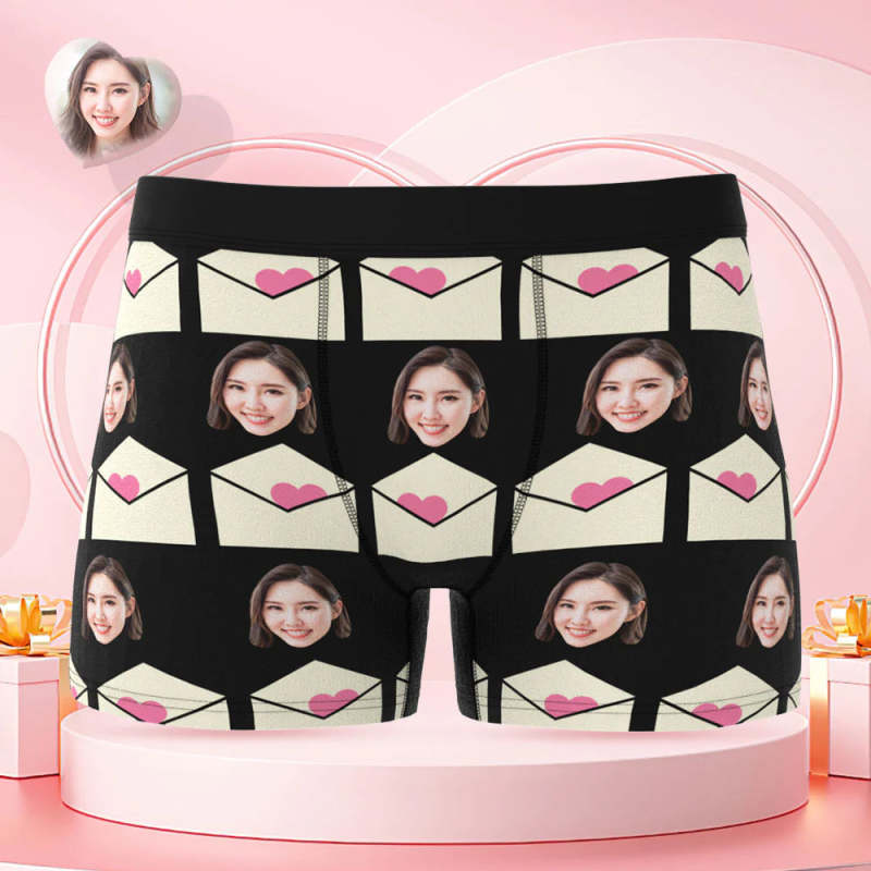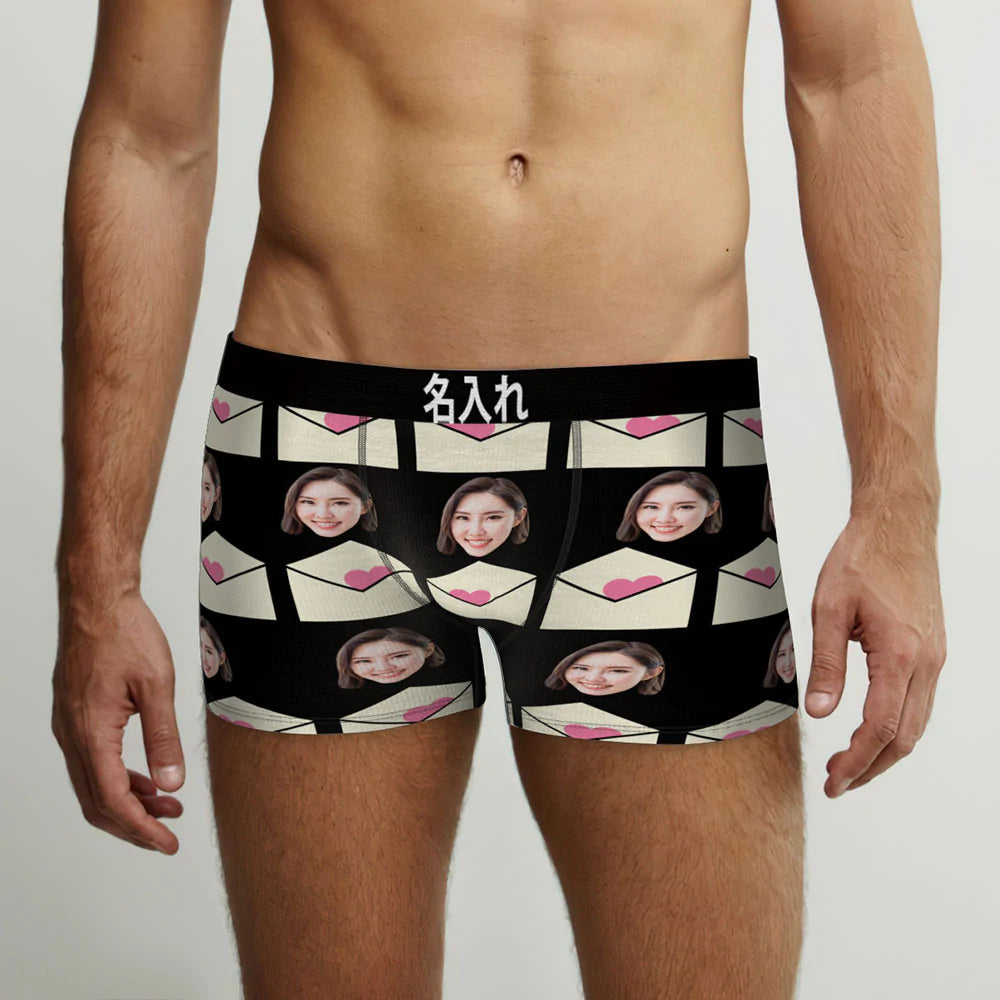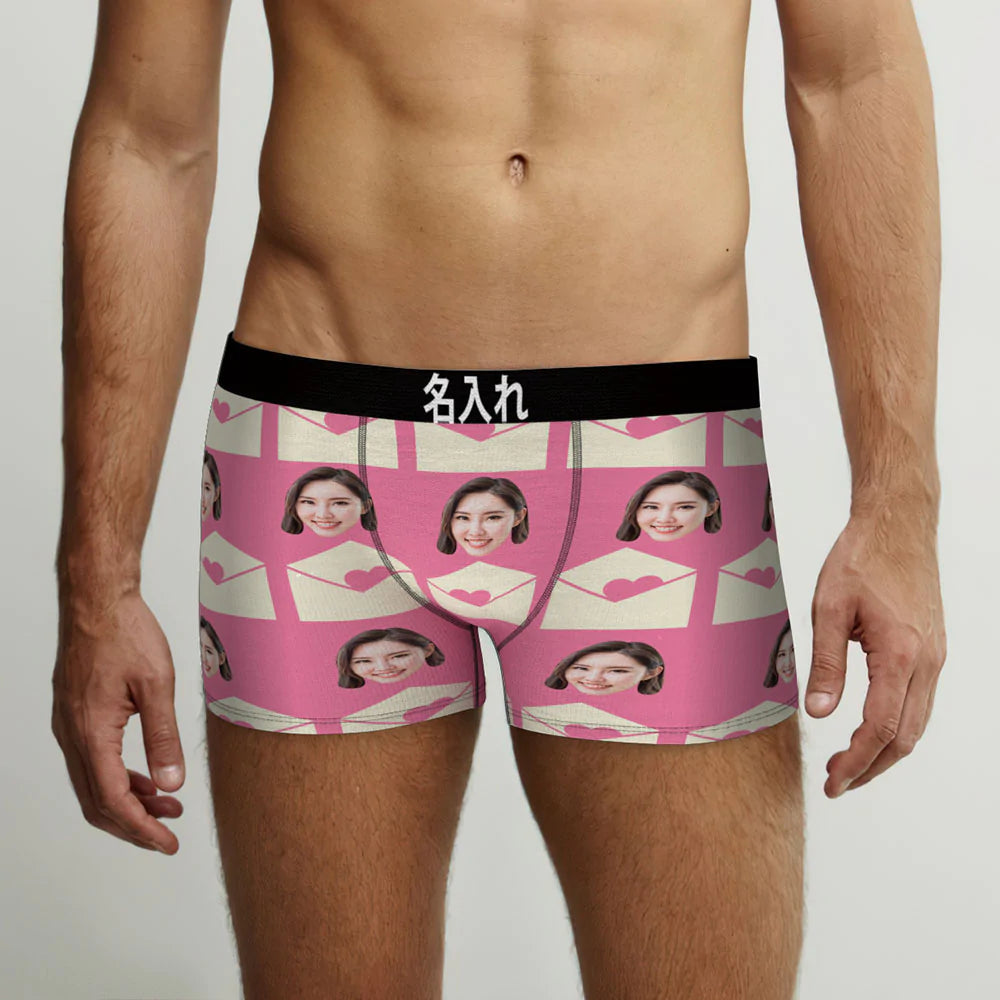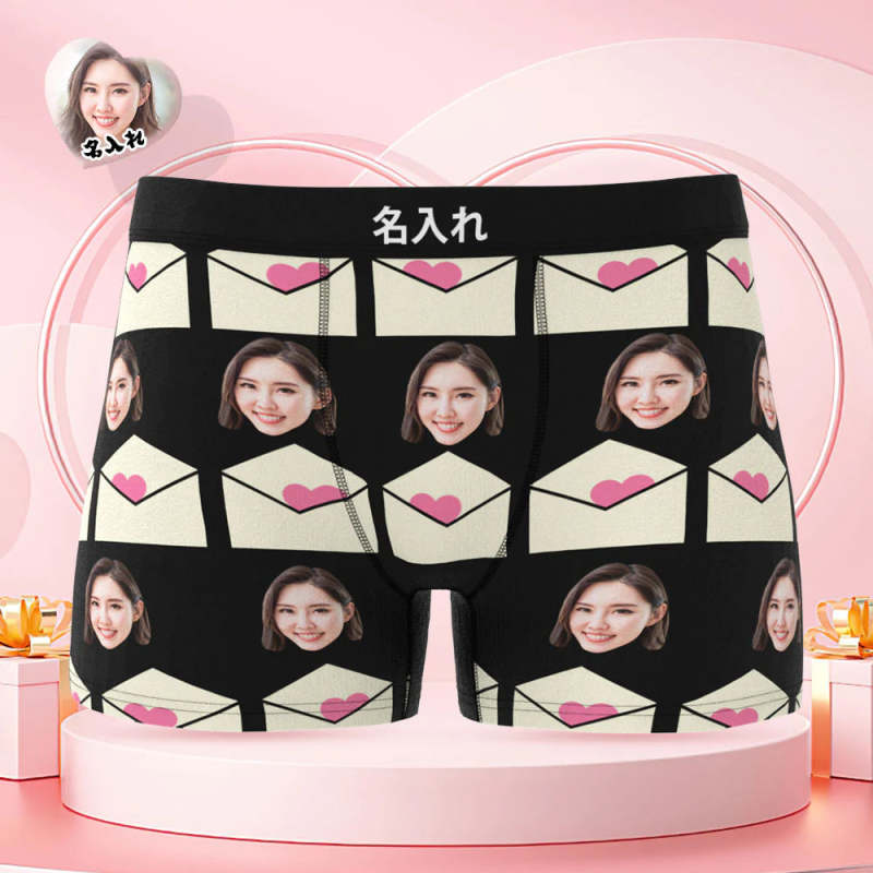 カスタムフォトボクサーパンツ-写真入れ可能なオリジナルバレンタイン顔下着ショーツギフト-ラブレタ柄
