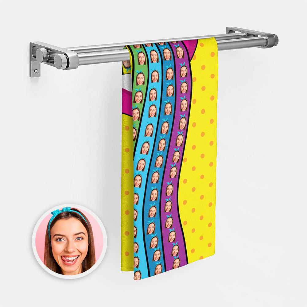 本物のタオルに顔をプリントしましょう!自分自身や愛する人へのユニークなギフトをデザインしてください。カスタムタオルを使用すると、認識しやすくなり、間違って受け取られることがなくなります。カスタマイズされたタオルは最新の印刷技術を使用しています。画像は鮮明で明るいです。毒性のない高品質の永久染料を使用しているだけでなく、あなたと環境の安全も確保しています。愛する人への最高の面白いギフトです!