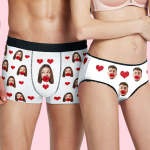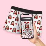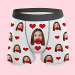 カスタムフェイス男性用ボクサー-写真入れ可能な赤い唇とハート柄の面しろボクサーパンツ彼氏へのバレンタインデーギフト