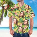 夫への顔ギフト付きカスタム顔アロハシャツ - 花