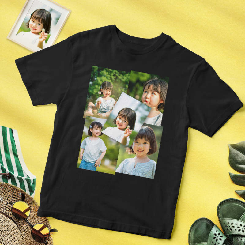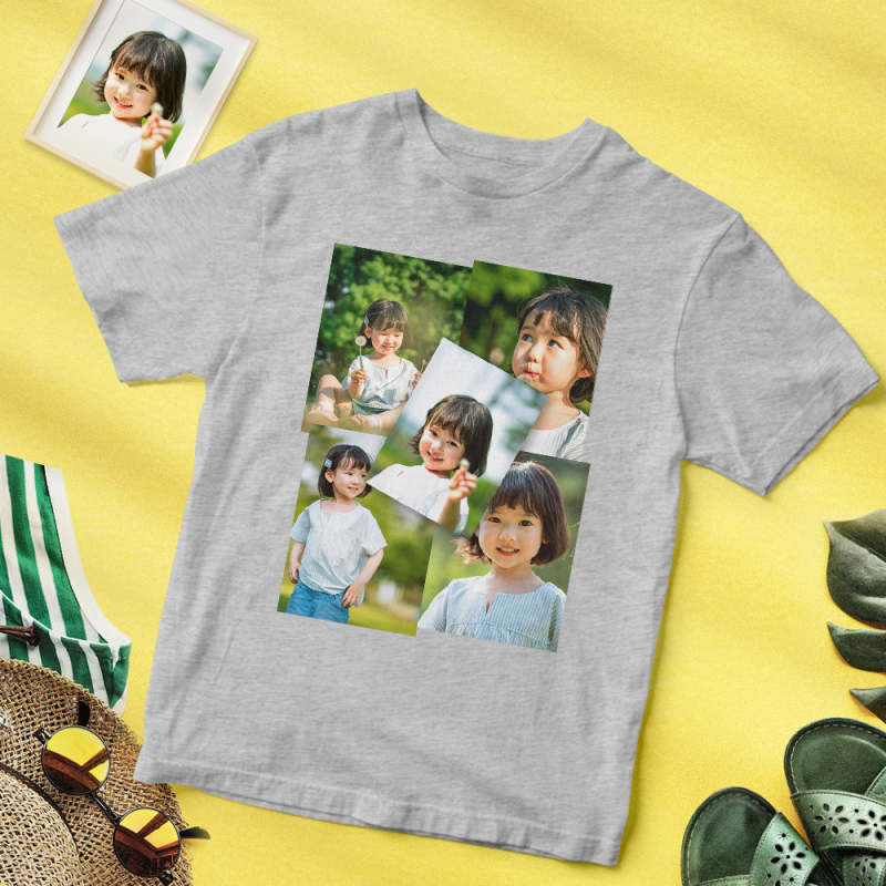 カスタムフォトTシャツ - 写真5枚入れ可能なオリジナルかわいい子写真T-SHIRTプレゼント