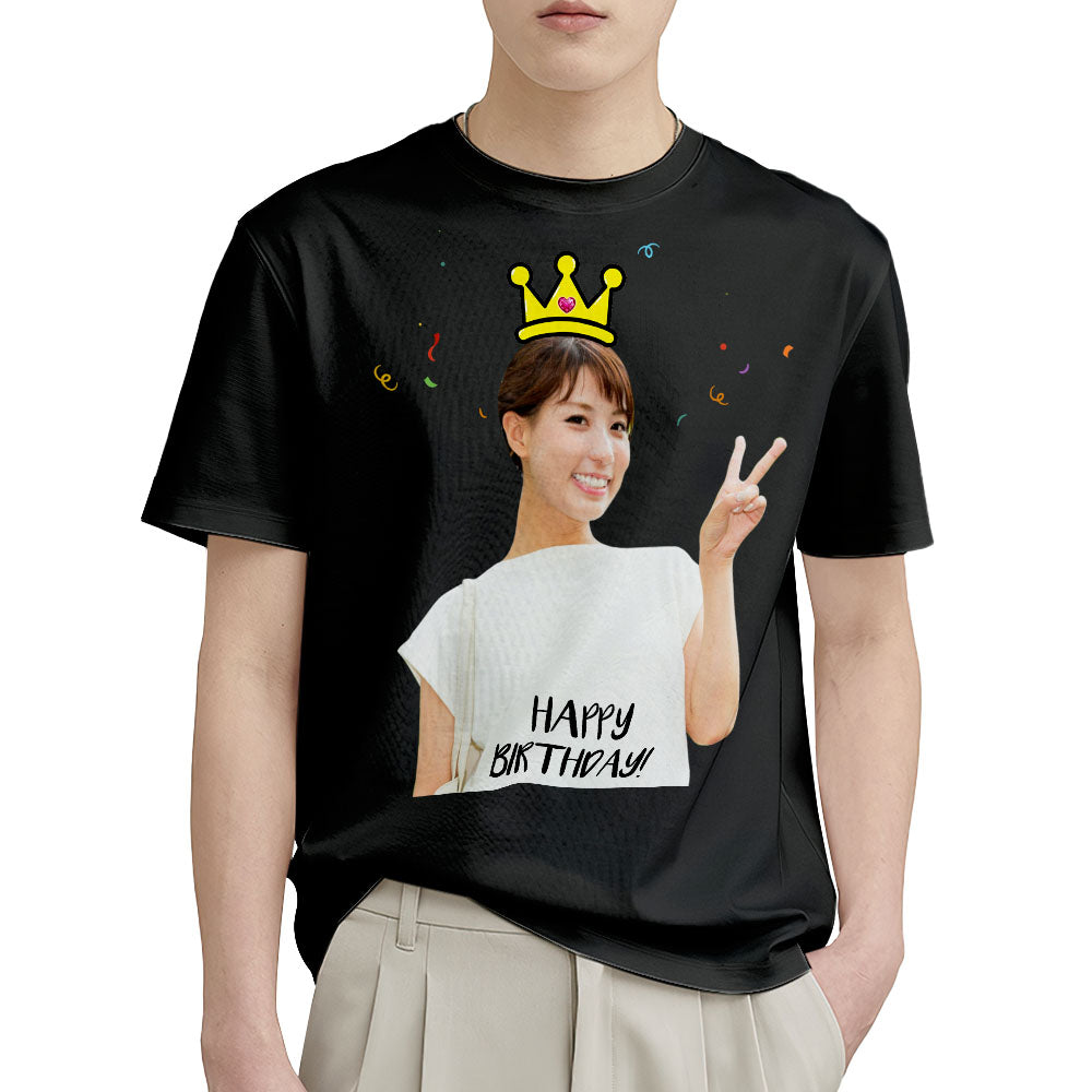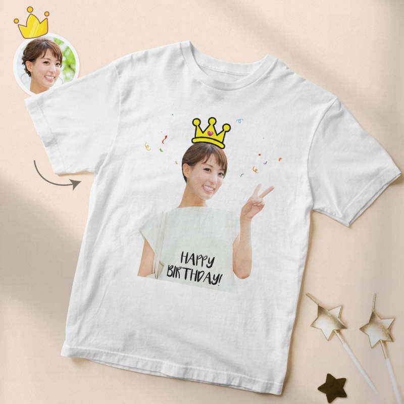カスタムフォト誕生日Tシャツ - 写真入れ可能な写真T-SHIRTプレゼント - 王冠柄の誕生日プレゼント