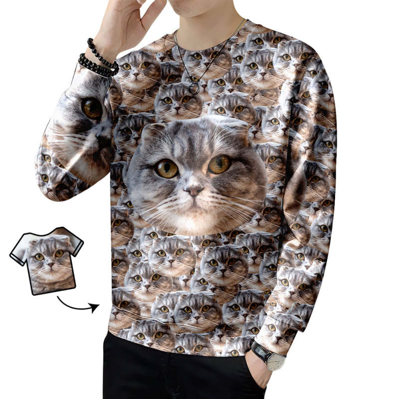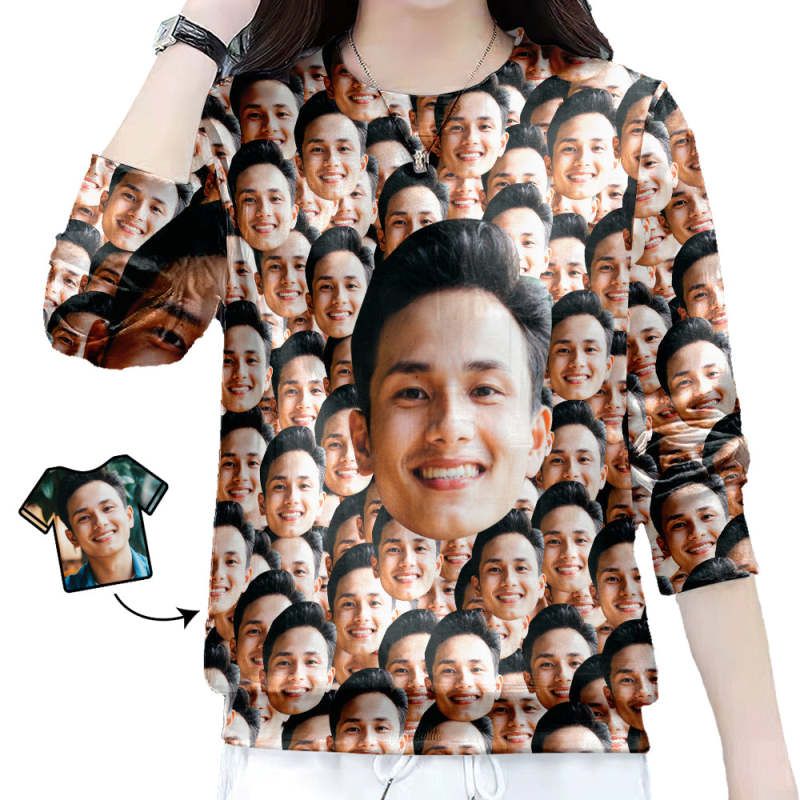 カスタムフェイスユニセックスパーカー - カジュアルプリント写真丸襟のシャツ - ビッグフェイス。家族、恋人、友人、またはあなた自身へのユニークなギフト。