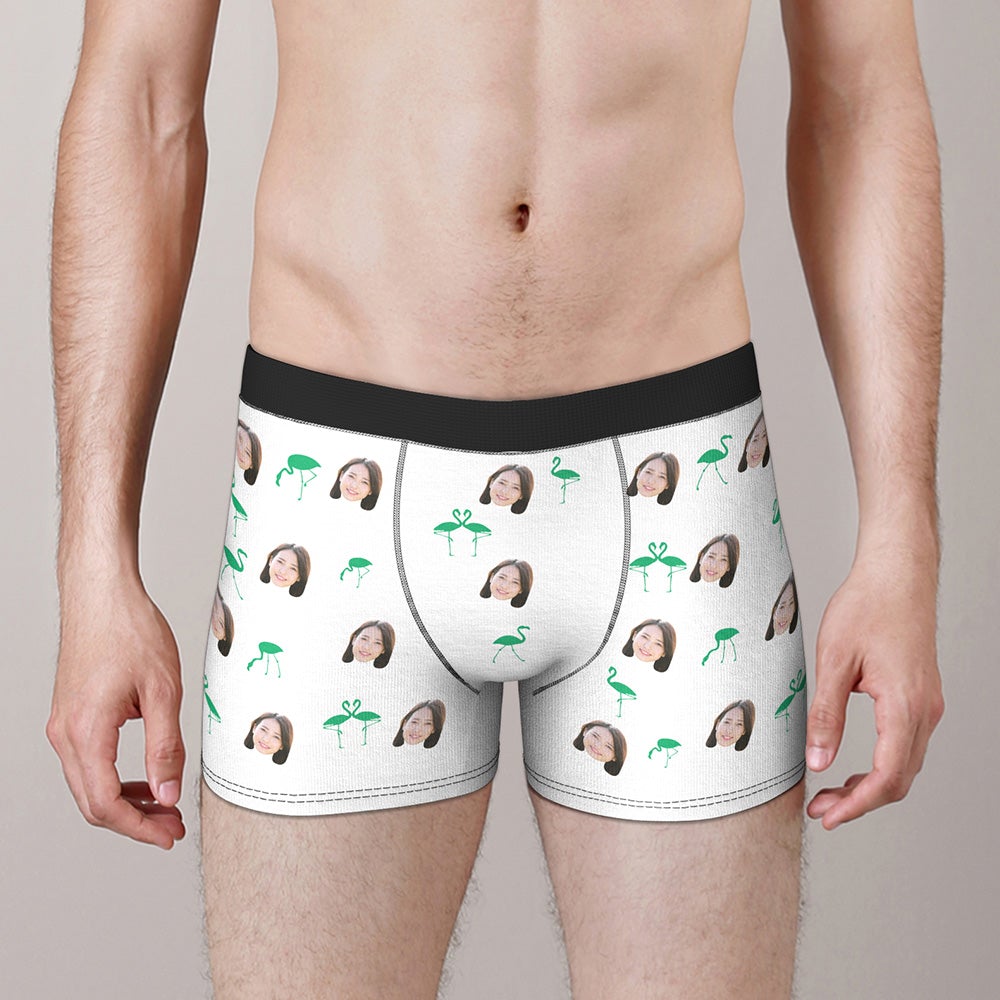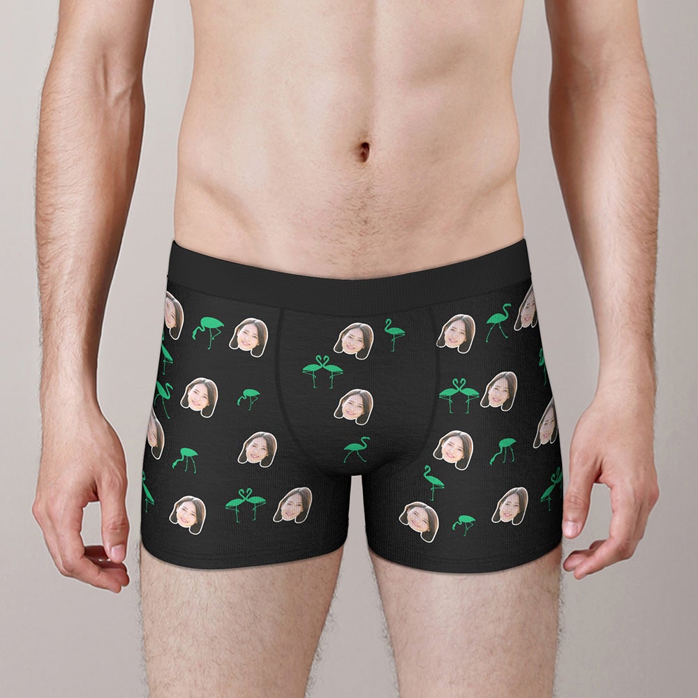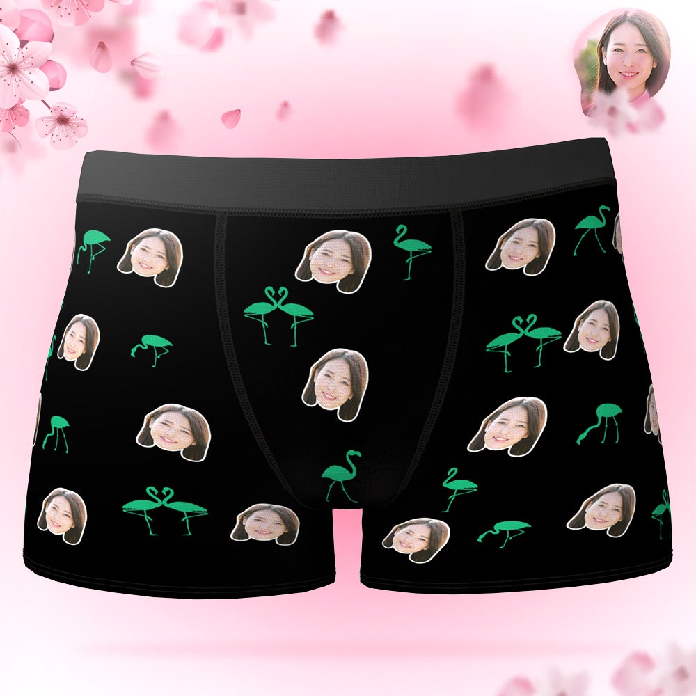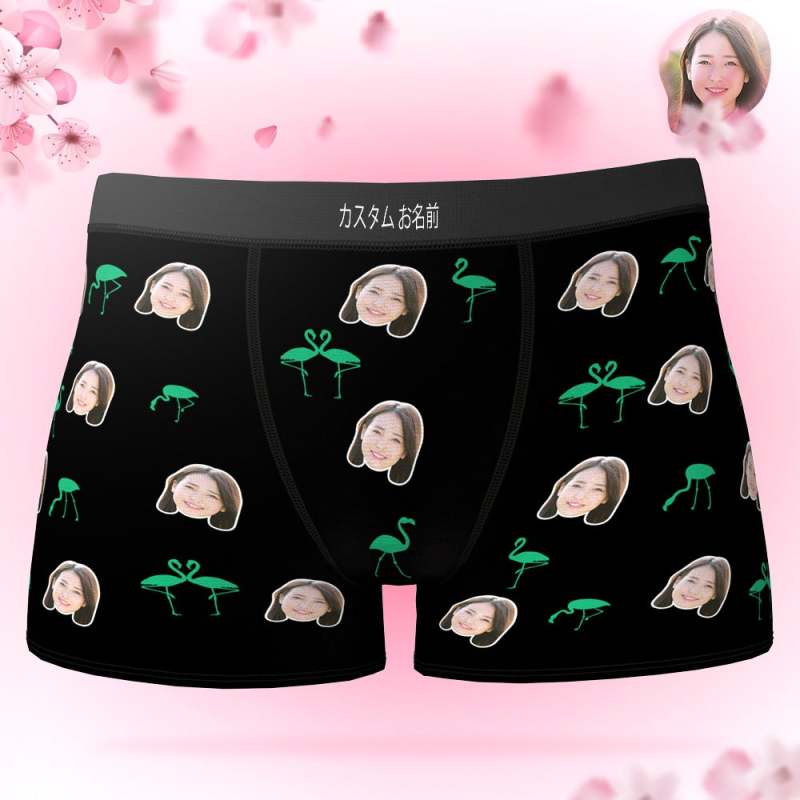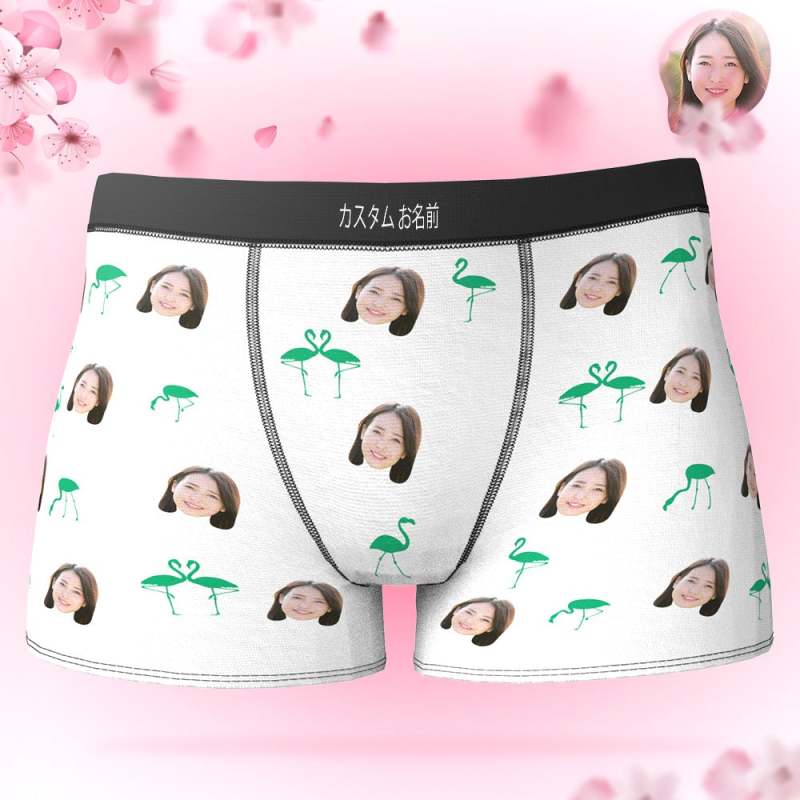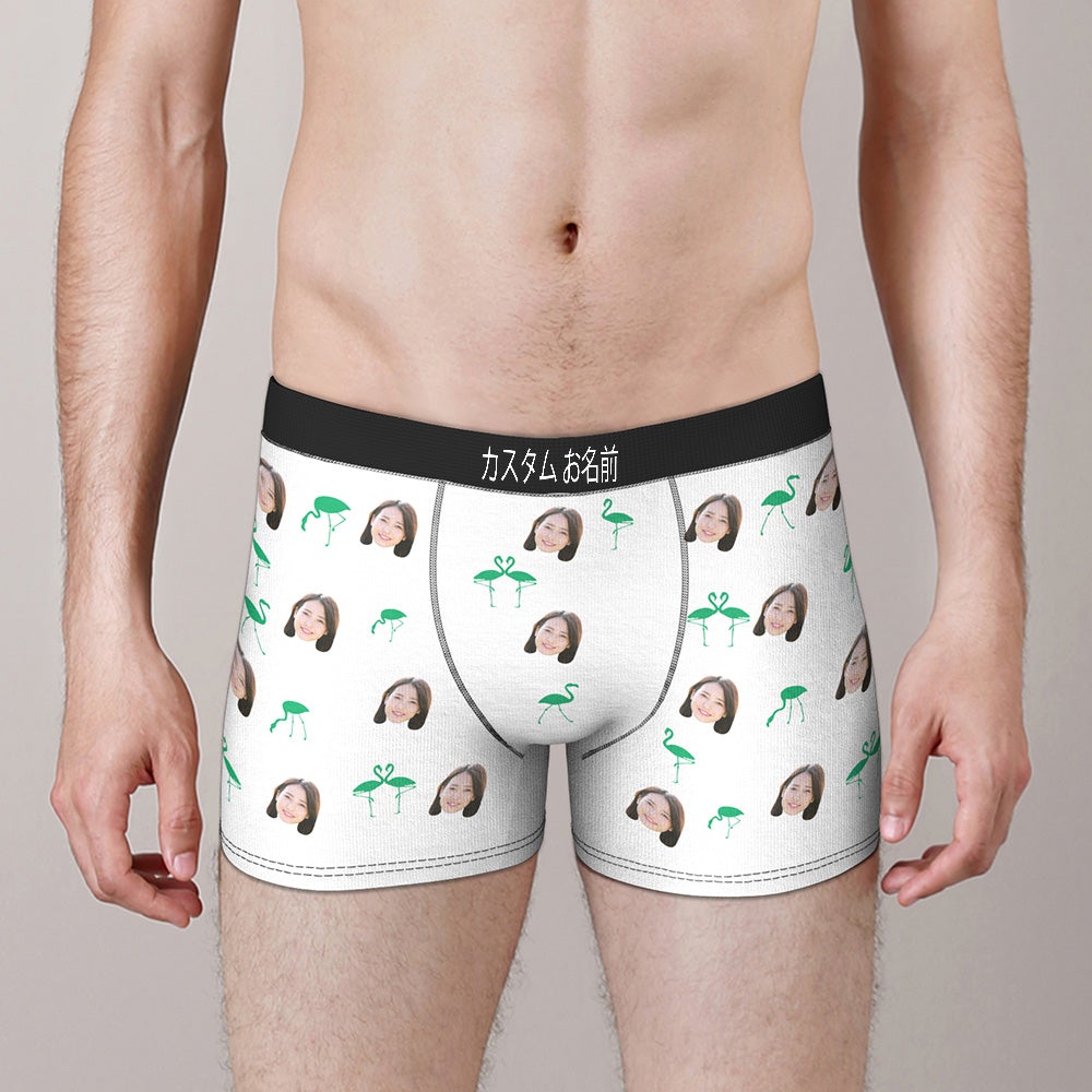 カスタムフォトボクサーパンツ-写真とテキスト入り可能なフラミンゴ柄の下着彼氏へのバレンタインギフト