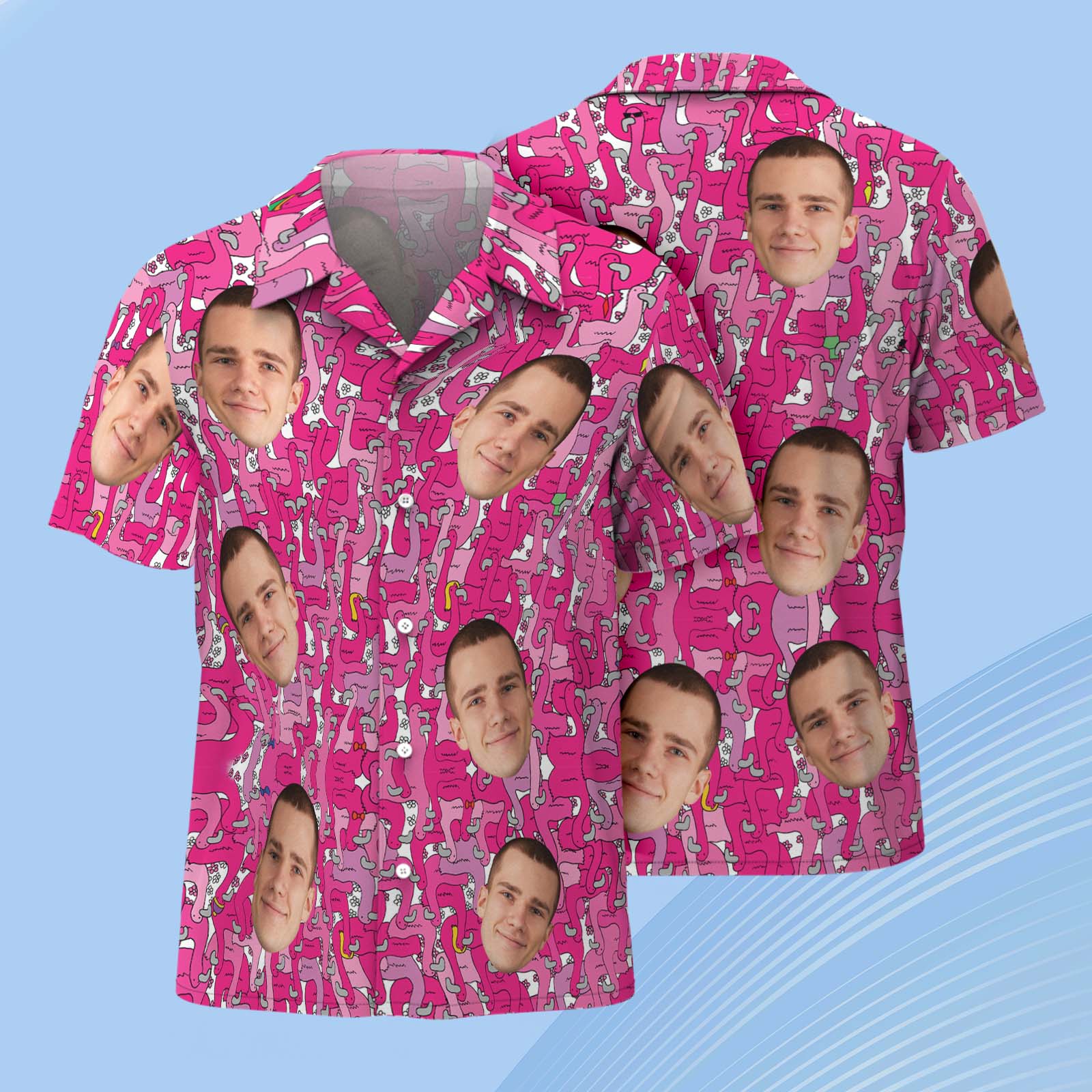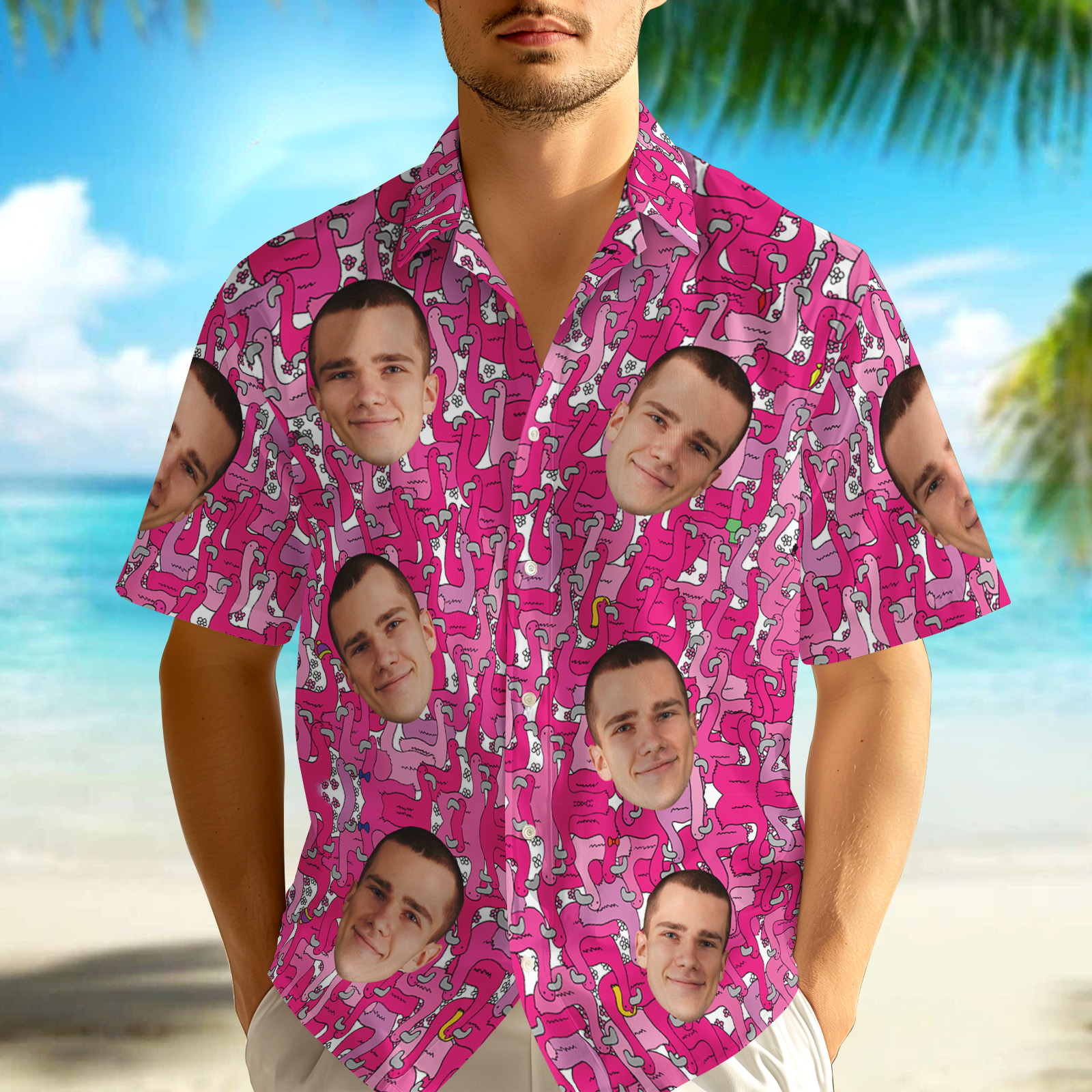 カスタムフラミンゴハワイアンシャツ パーソナライズ写真ハワイアンシャツ