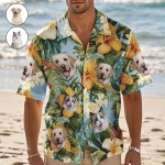 カスタムハワイアンシャツ オレンジの花 パーソナライズ写真ハワイアンシャツ ペット愛好家のための面白いバケーションパーティーシャツ