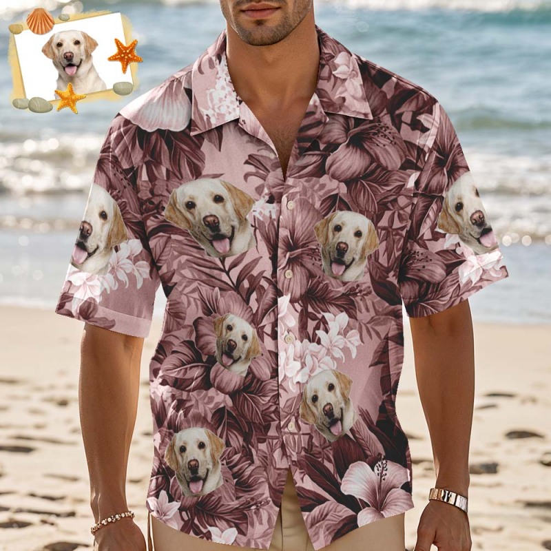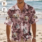 カスタムハワイアンシャツ ピンクの葉 パーソナライズされた写真ハワイアンシャツ ペット愛好家のための面白いバケーションパーティーシャツ