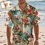 カスタムハワイアンシャツ 赤い花柄 パーソナライズ写真ハワイアンシャツ ペット愛好家のための面白いバケーションパーティーシャツ