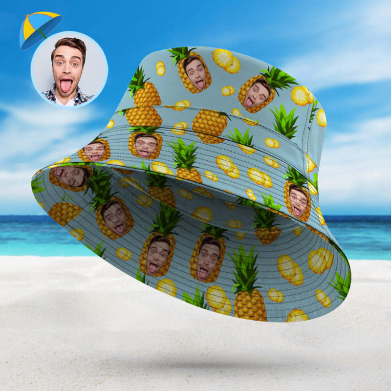カスタムハワイアンスタイルバケットハット両面着用リバーシブル面白いパイナップルプリントキャップ