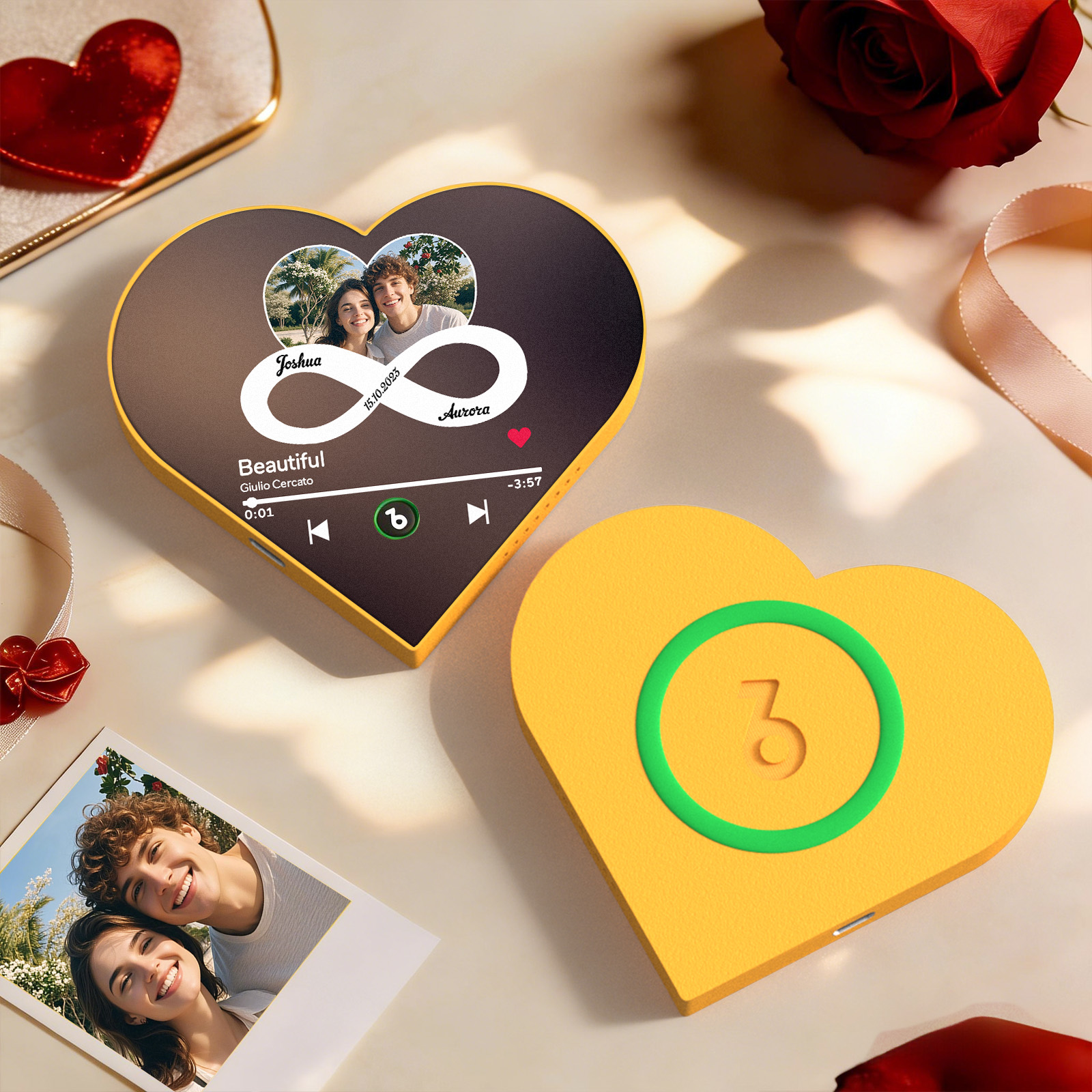 お気に入りの音楽を、ハートフレームのミュージック冷蔵庫マグネットで生き生きと表現しましょう!この革新的なマグネットは単なる装飾品ではありません。冷蔵庫から直接お気に入りの曲を再生できる、機能的でインタラクティブなデバイスです。ライブラリからお気に入りの曲を選ぶことも、お手持ちの音楽ファイルや録音ファイルをアップロードすることもできます。料理をしながらリラックスできるプレイリストを聴きたい時も、おやつを食べながらお気に入りの音楽を楽しみたい時も、この冷蔵庫マグネットがあればすべて叶います。