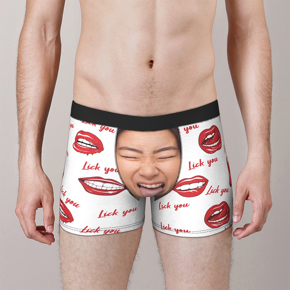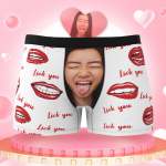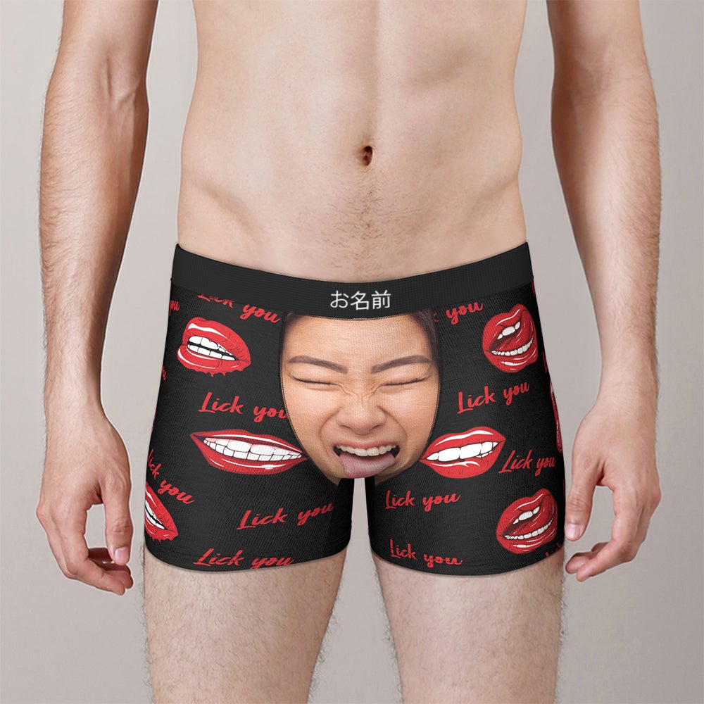 カスタムフォトボクサーパンツ-写真とテキスト入り可能な唇を舐める柄のオリジナル下着バレンタインプレゼント