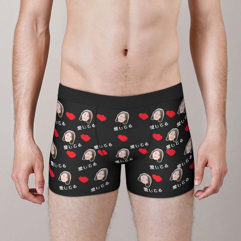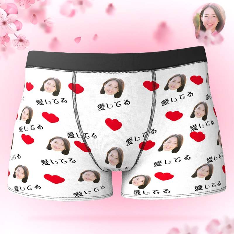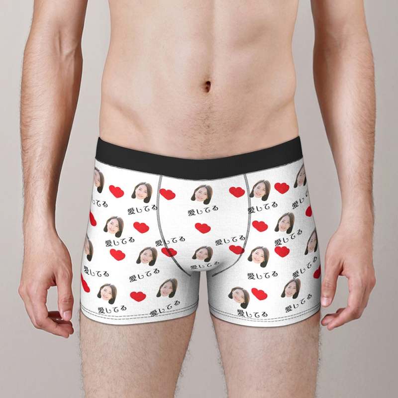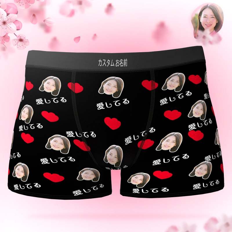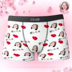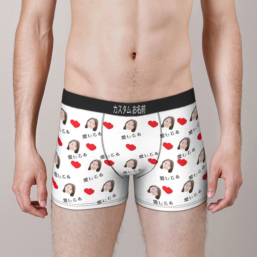 カスタムフォトボクサーパンツ-写真とテキスト入り可能な愛してるとハート柄の下着バレンタインギフト