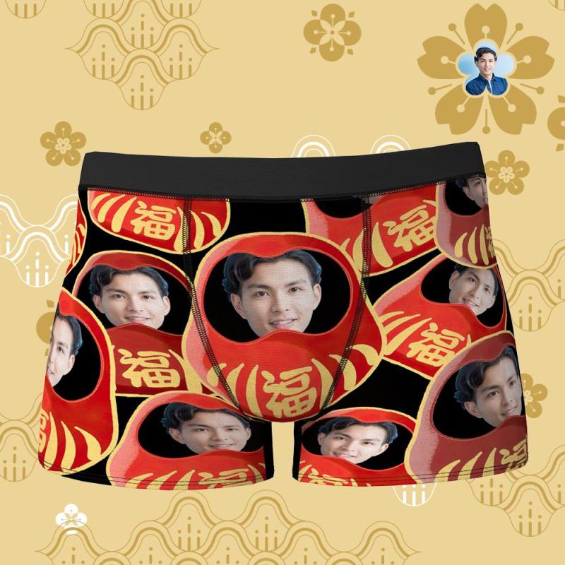 カスタムフォトボクサーパンツ-写真入り可能なダルマ柄オリジナル下着新年のプレゼント