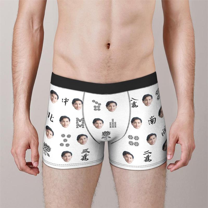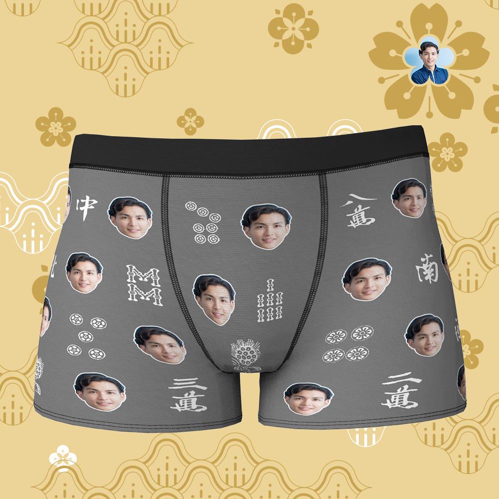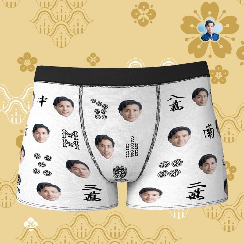 カスタムフォトボクサーパンツ-写真入り可能なマージャン柄オリジナル下着新年のプレゼント