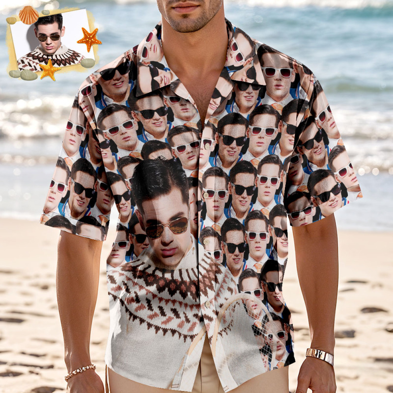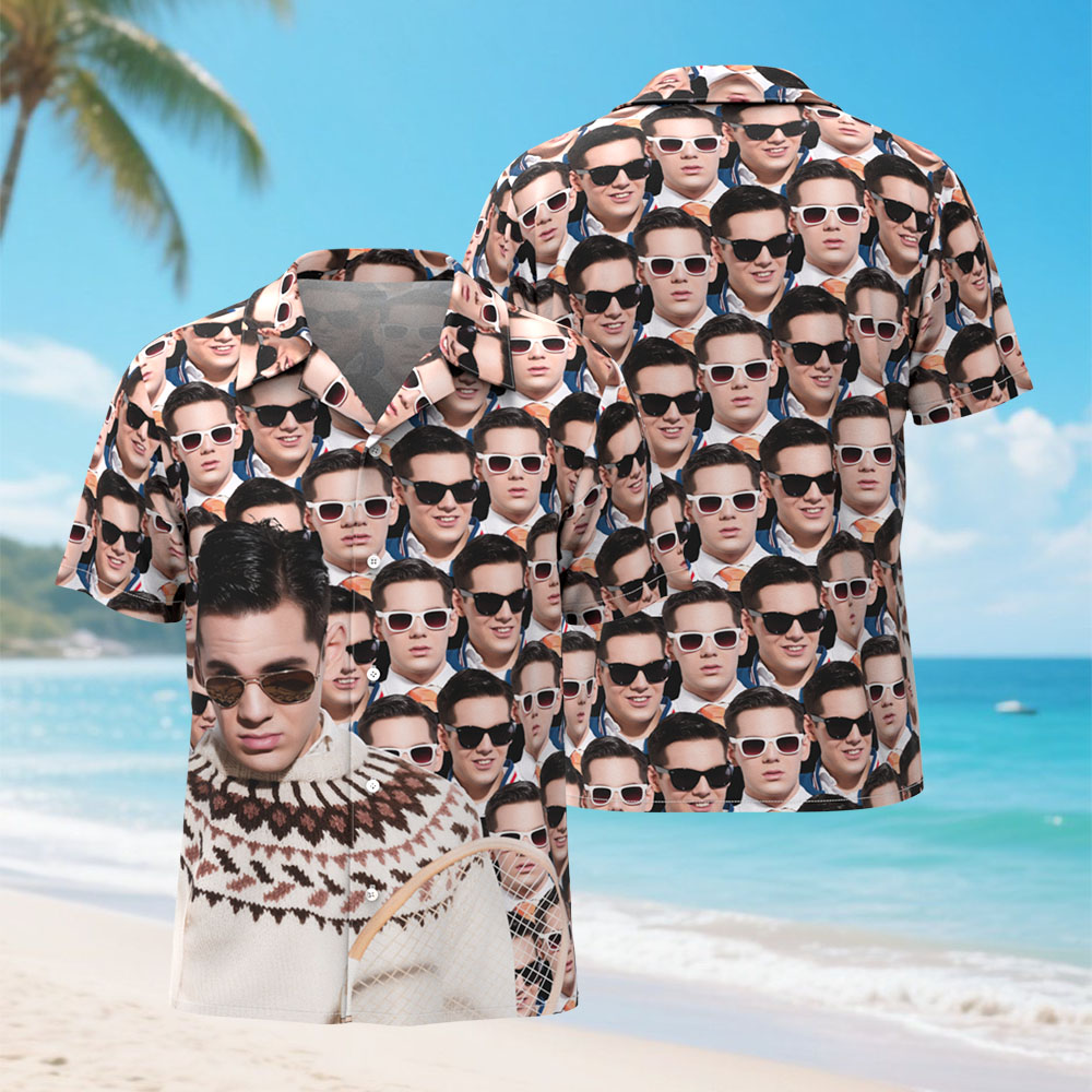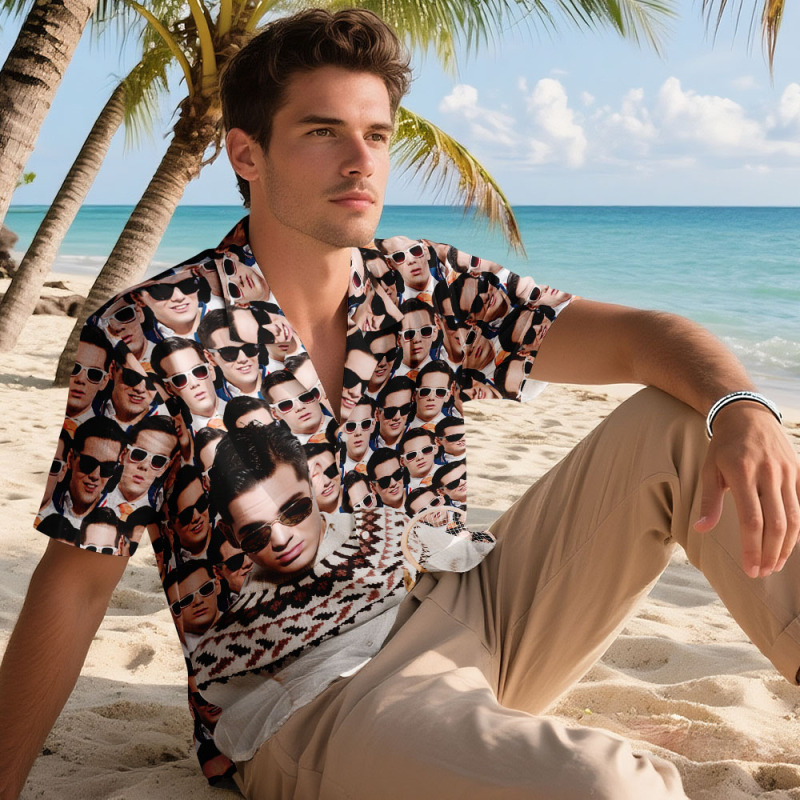 カスタムマッシュフェイスハワイアンシャツ パーソナライズアロハシャツ メンズバケーション