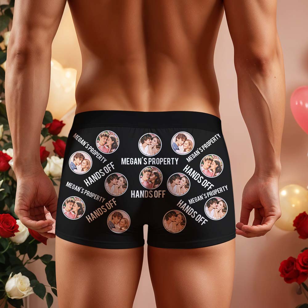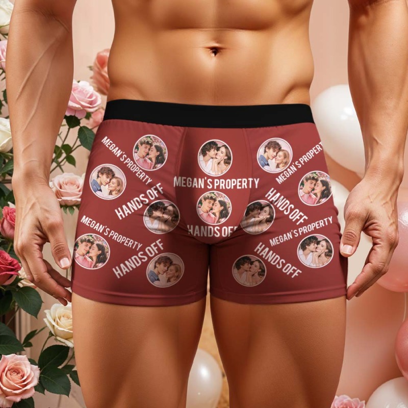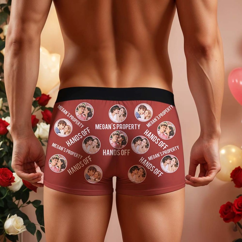 カスタムメンズボクサーショーツ パーソナライズされた写真フレーズ入りボクサーブリーフ 名前入り バレンタインデーギフト