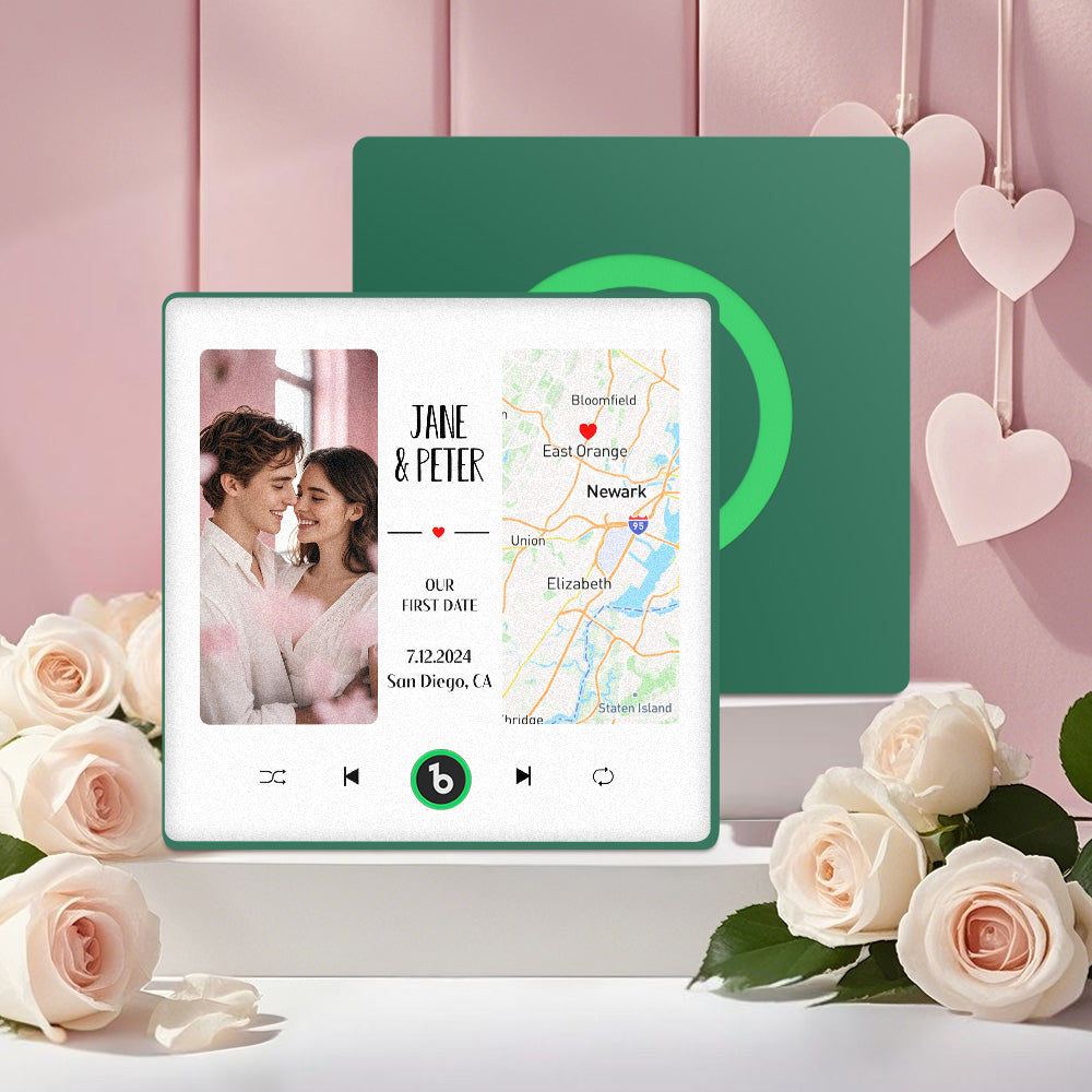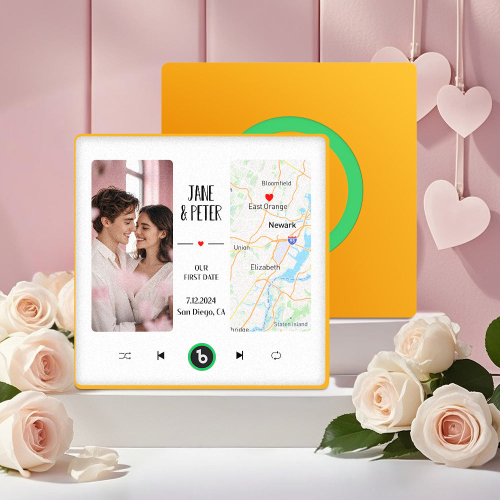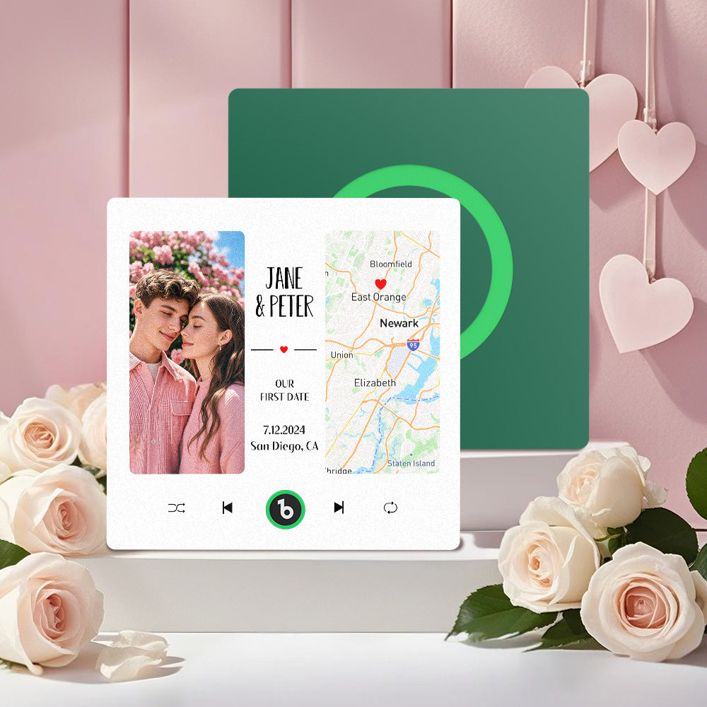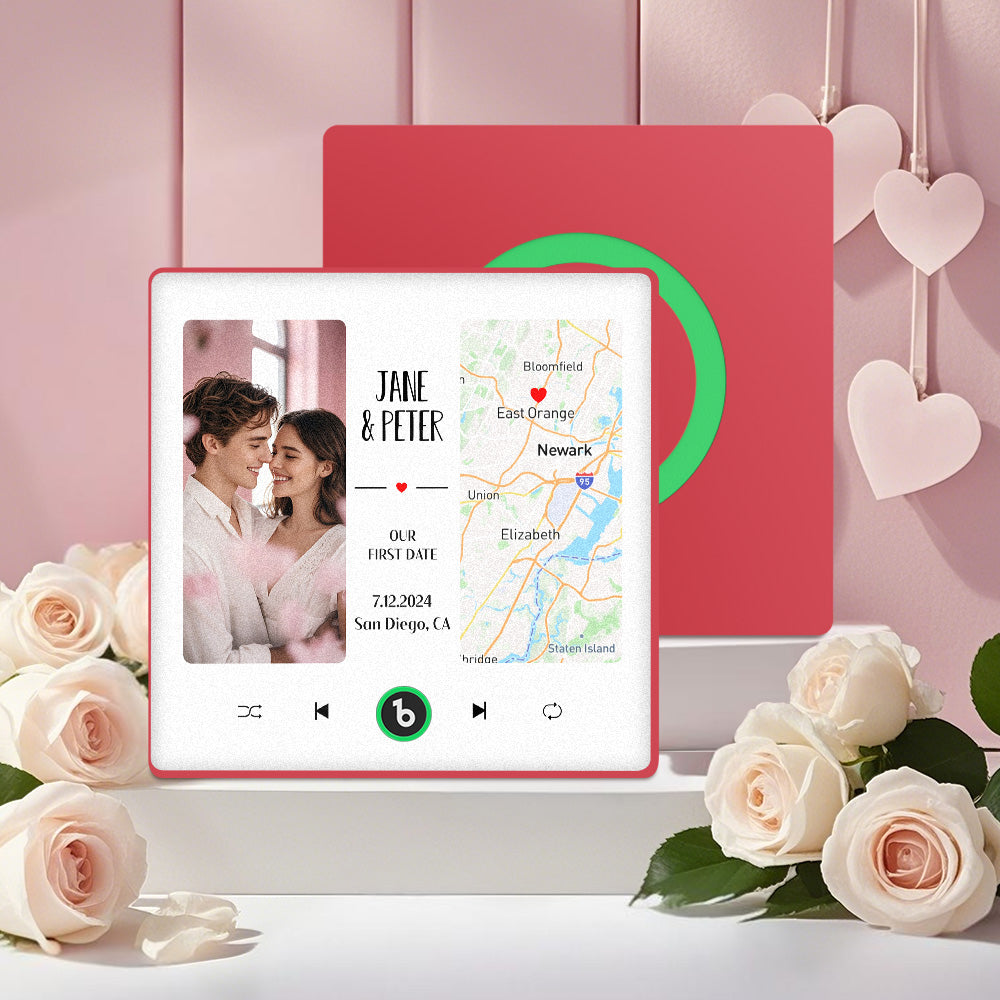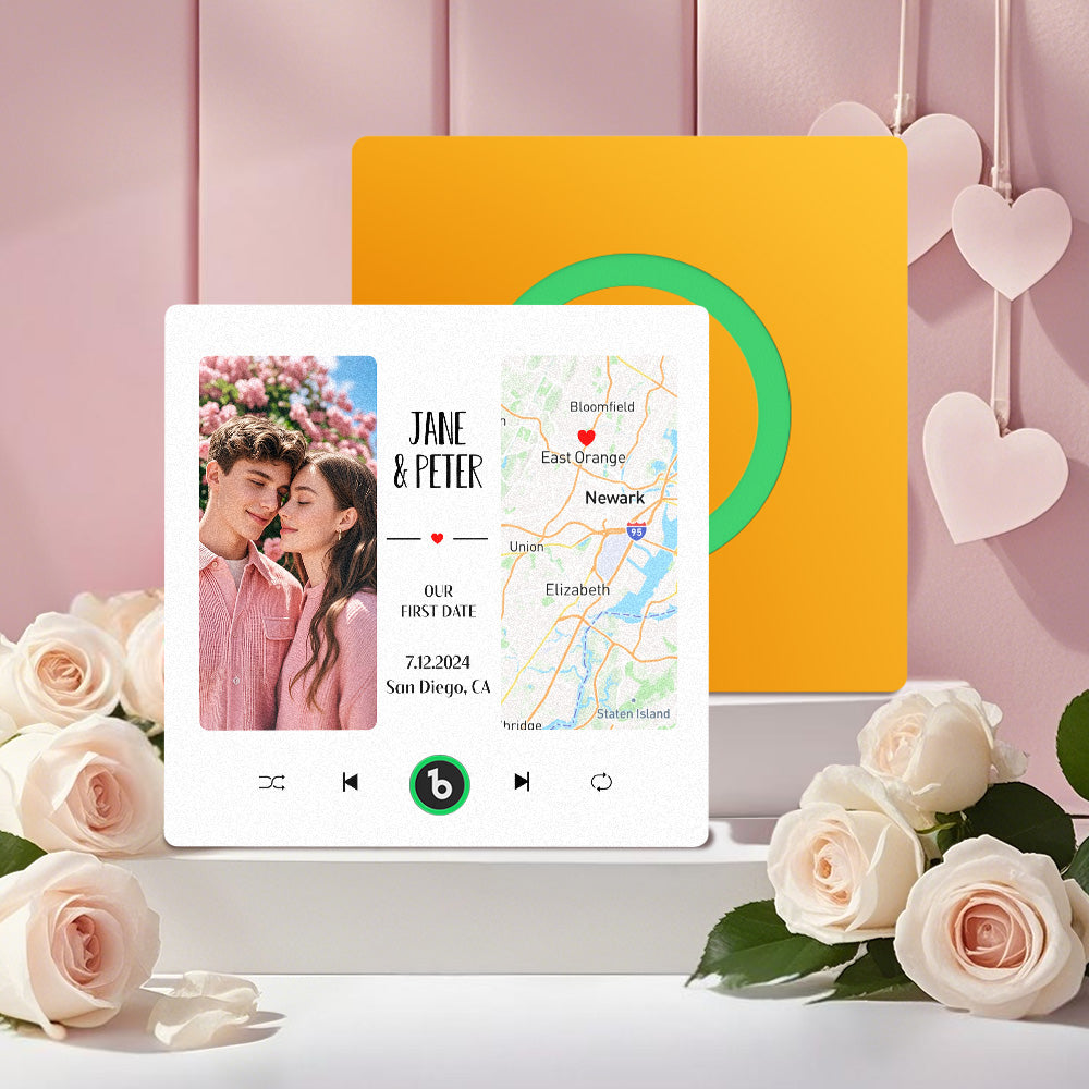 写真と地図付きのカスタム音楽冷蔵庫マグネット アップグレードされた音楽冷蔵庫マグネット バレンタインギフト 私たちの最初のデート