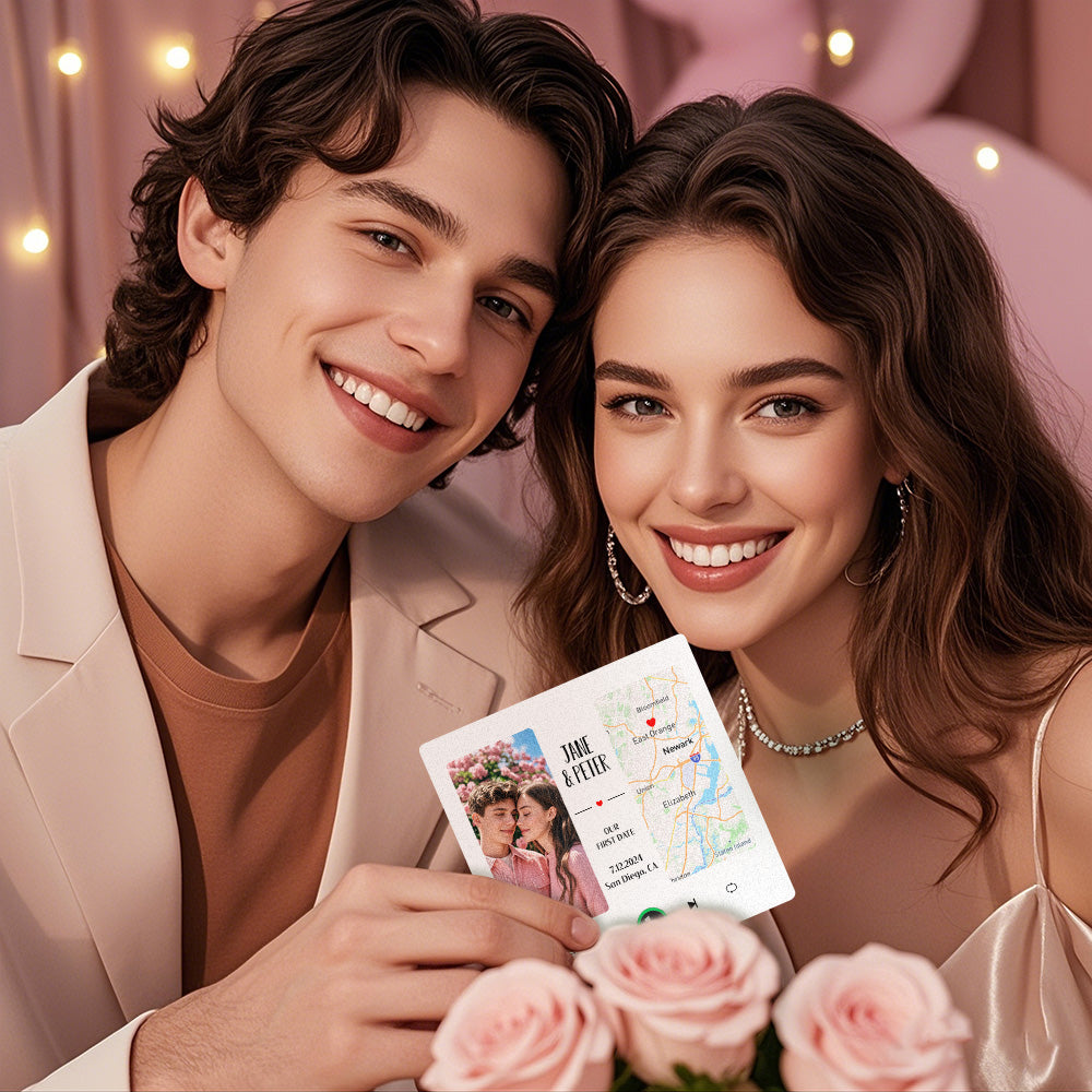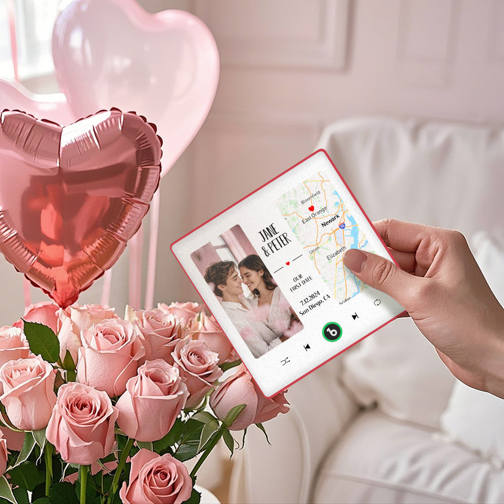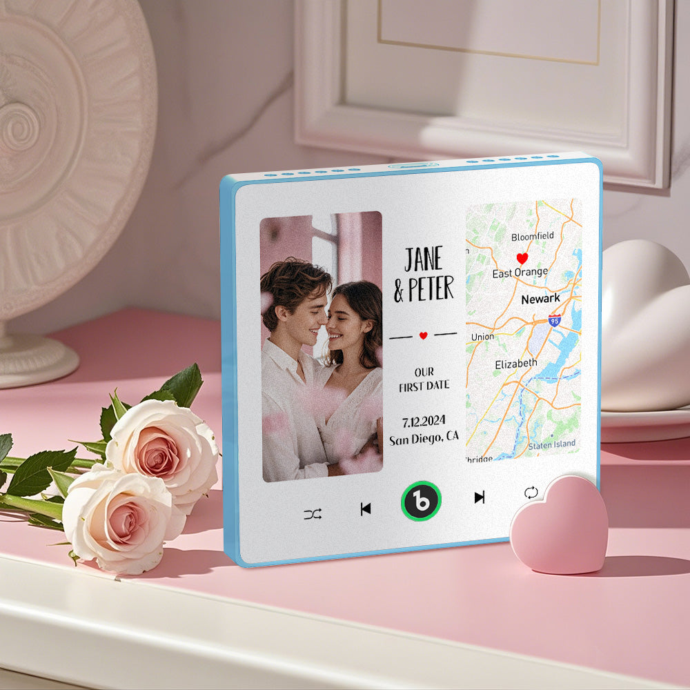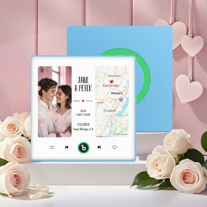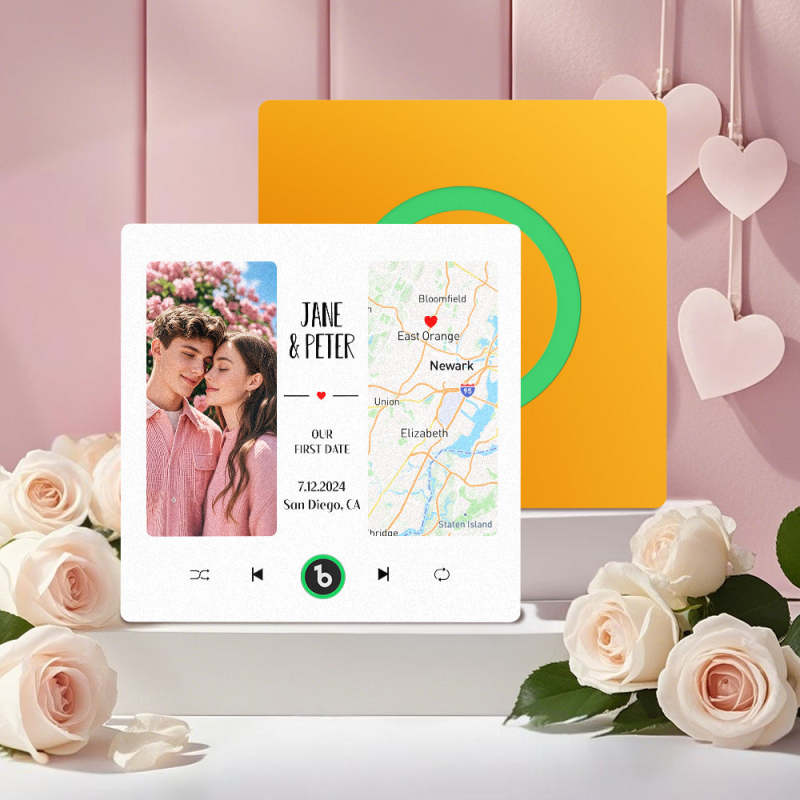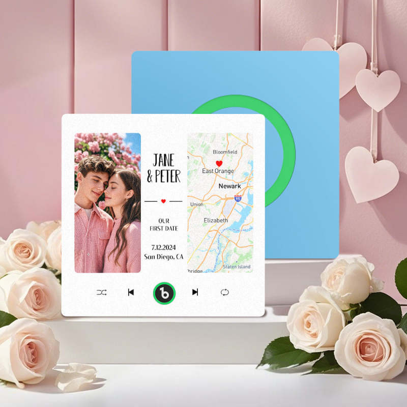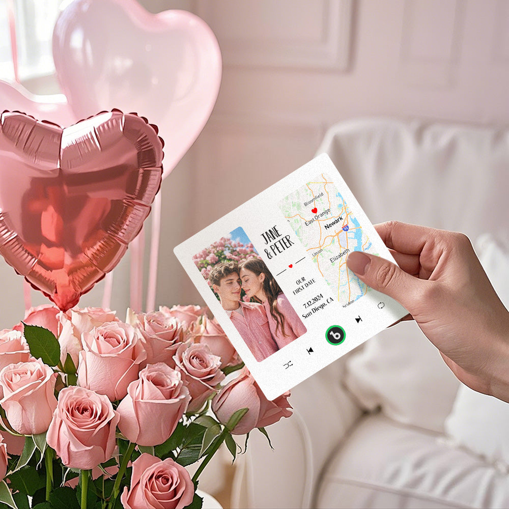 写真と地図付きのカスタム音楽冷蔵庫マグネット アップグレードされた音楽冷蔵庫マグネット バレンタインギフト 私たちの最初のデート