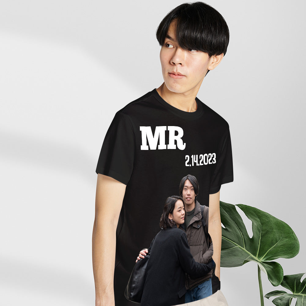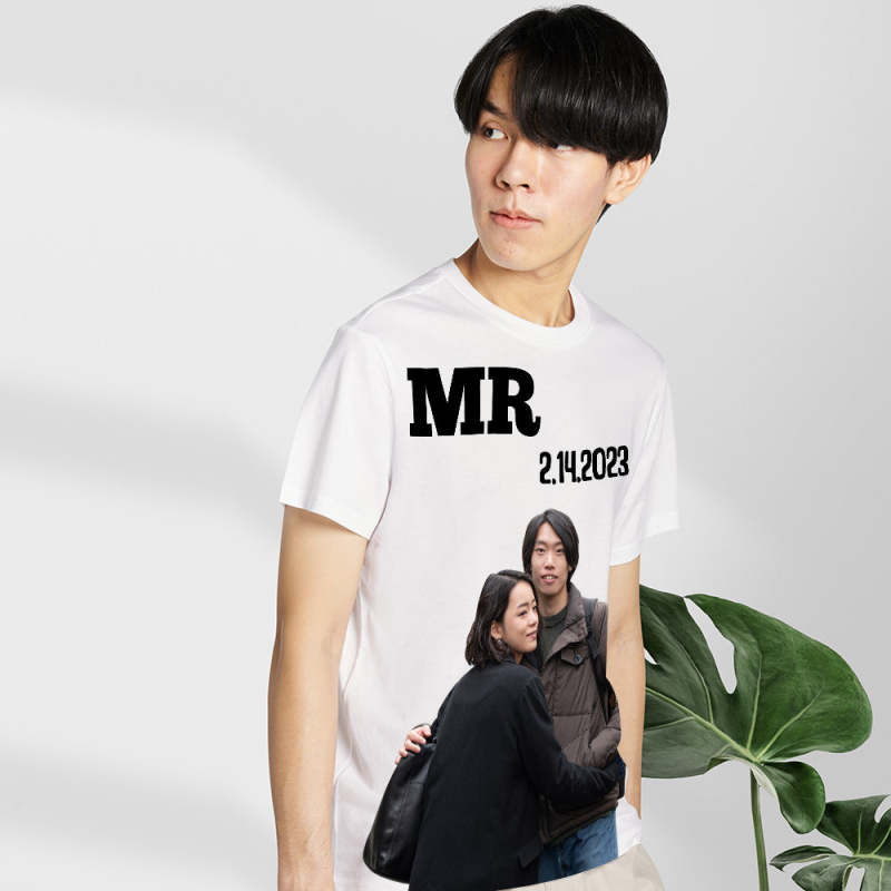 カスタムフォトTシャツ - 写真と記念日入れ可能な写真T-SHIRTギフト - 旦那へのプレゼント
