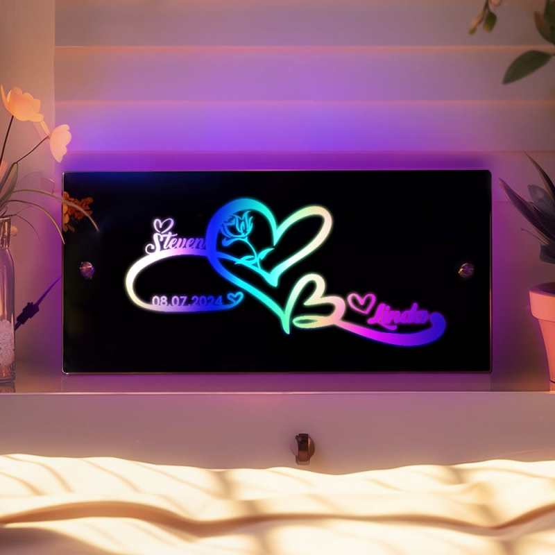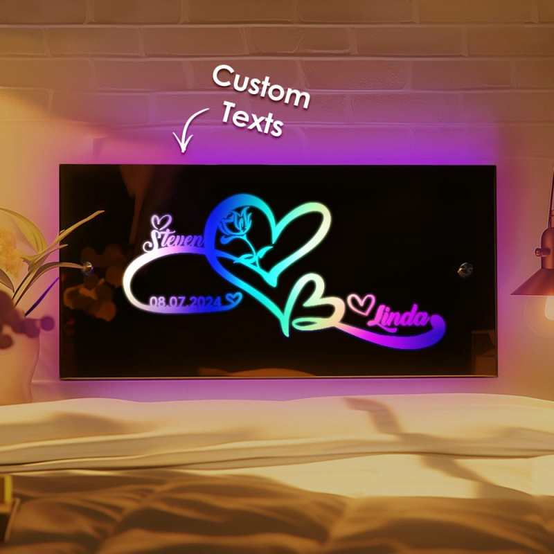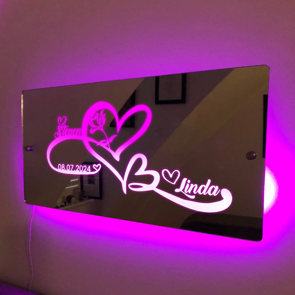Custom Name Mirror Light with Anniversary Date Personalized Gift for Her