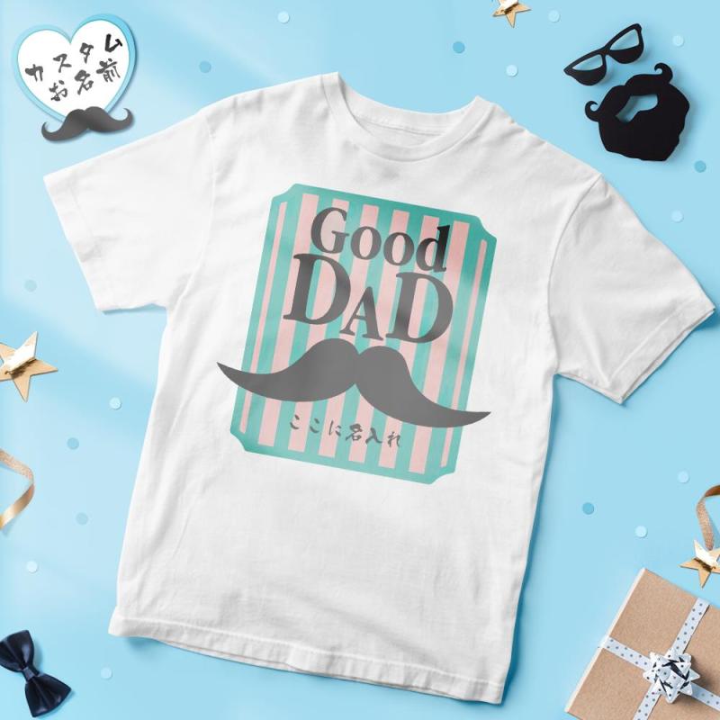 カスタム名前Tシャツ - テキスト入れ可能なT-SHIRTギフト父の日プレゼント - 髭柄GOOD DAD