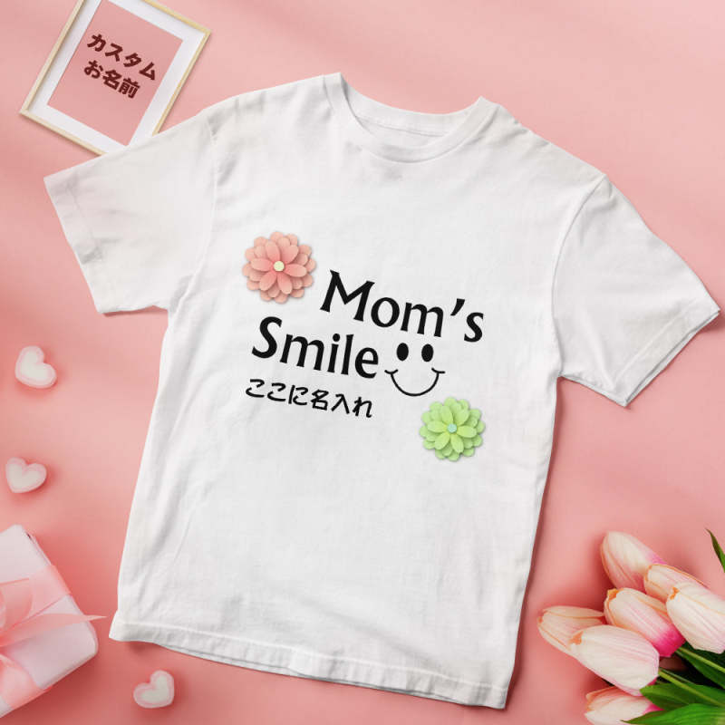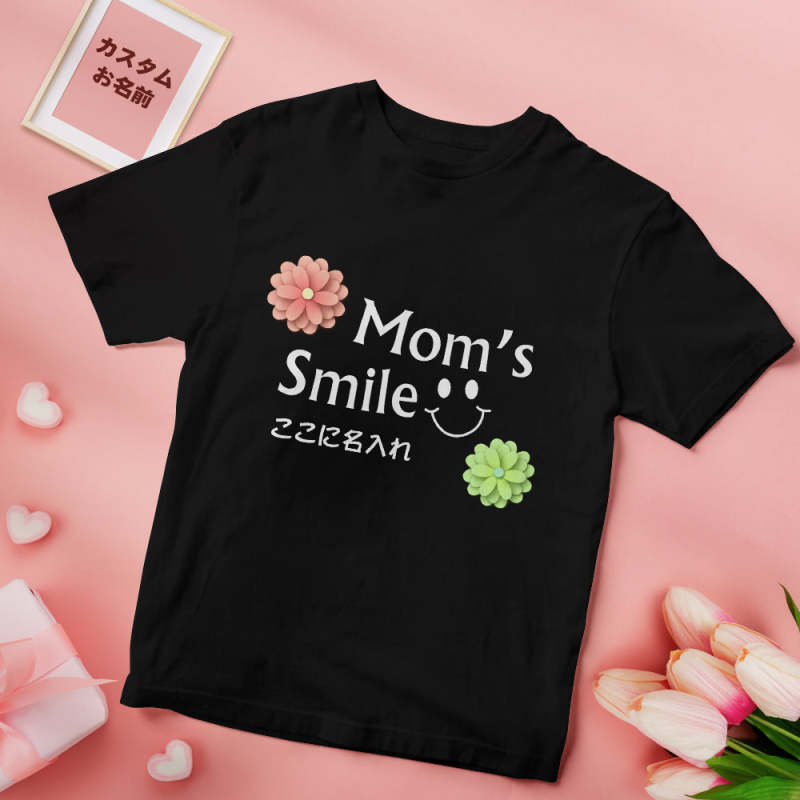 カスタム名前Tシャツ - テキスト入れ可能なT-SHIRTギフト母の日プレゼント - 笑顔