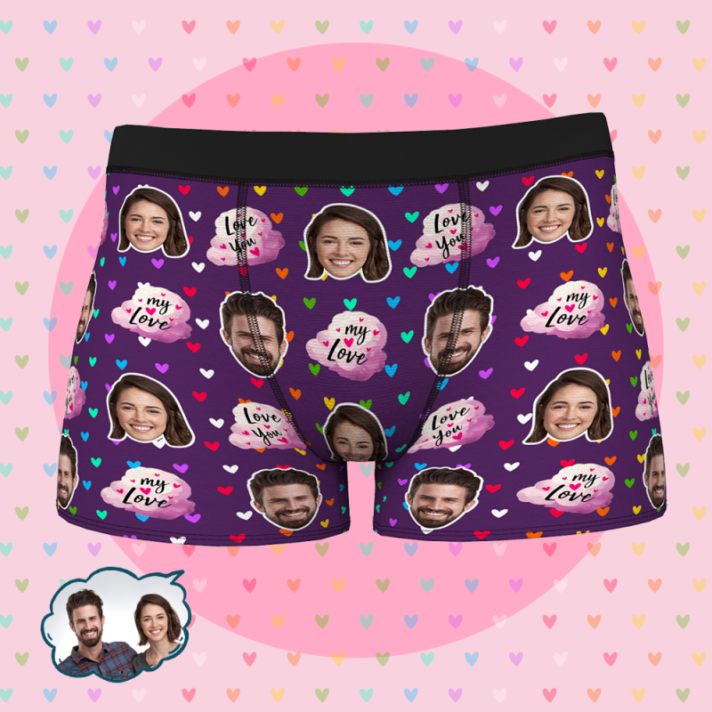 男性の夫のボーイフレンドの下着のためのカスタムパーソナライズされたフェイスボクサーブリーフ-MYLOVE
