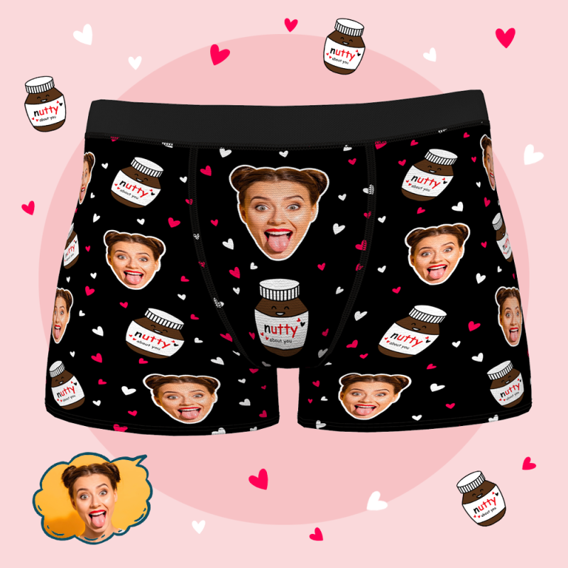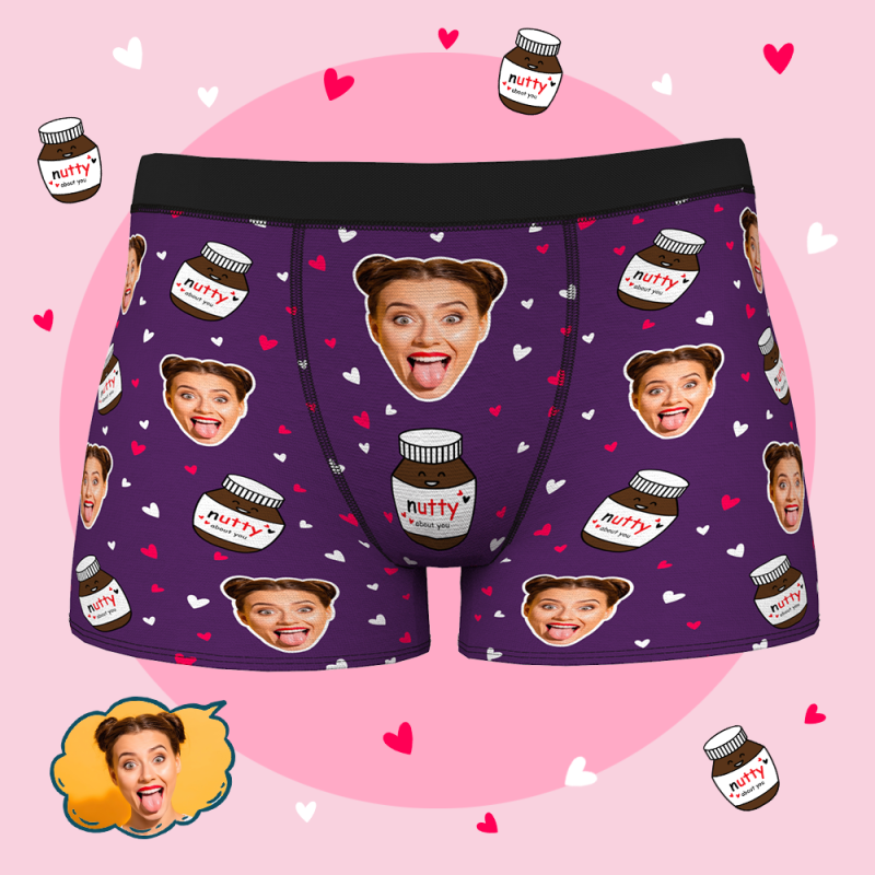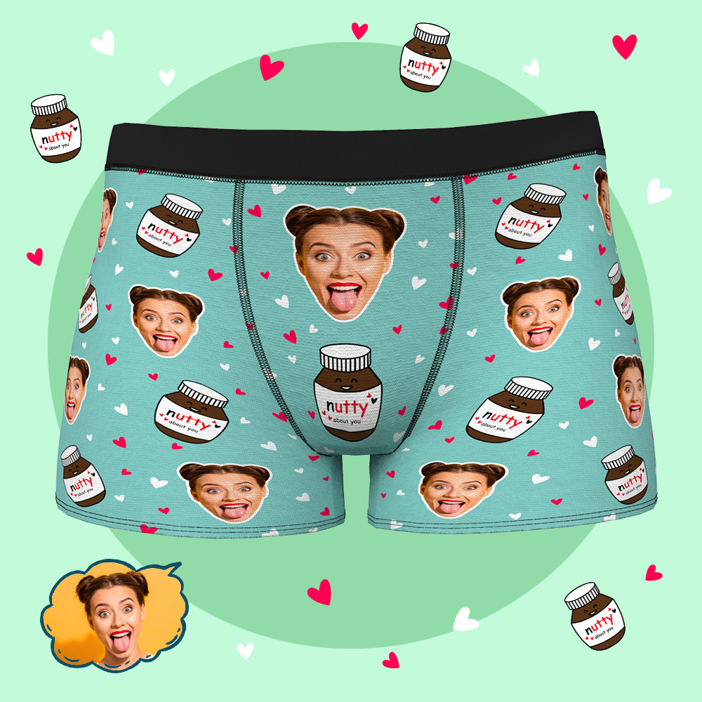 男性の夫のボーイフレンドの下着のためのカスタムパーソナライズされたフェイスボクサーブリーフ-あなたについてのNUTTY