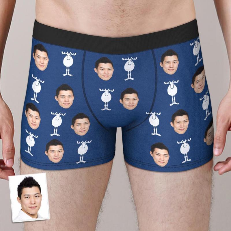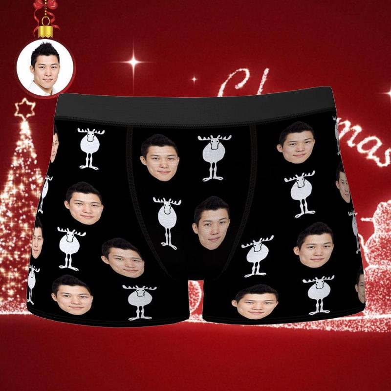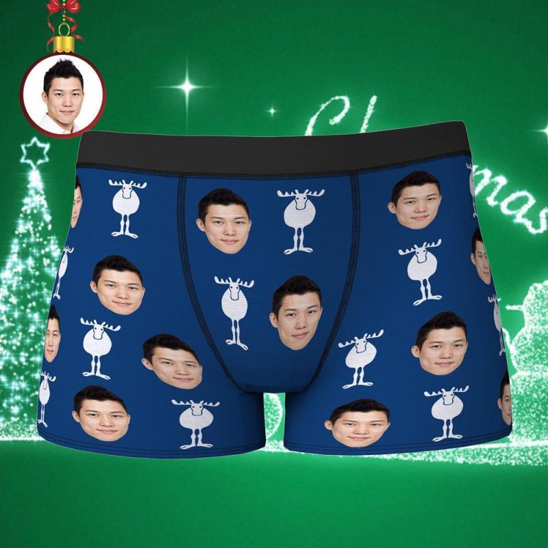 カスタムフォトボクサーパンツ-写真入れ可能なトナカイ柄のクリスマス下着ギフト