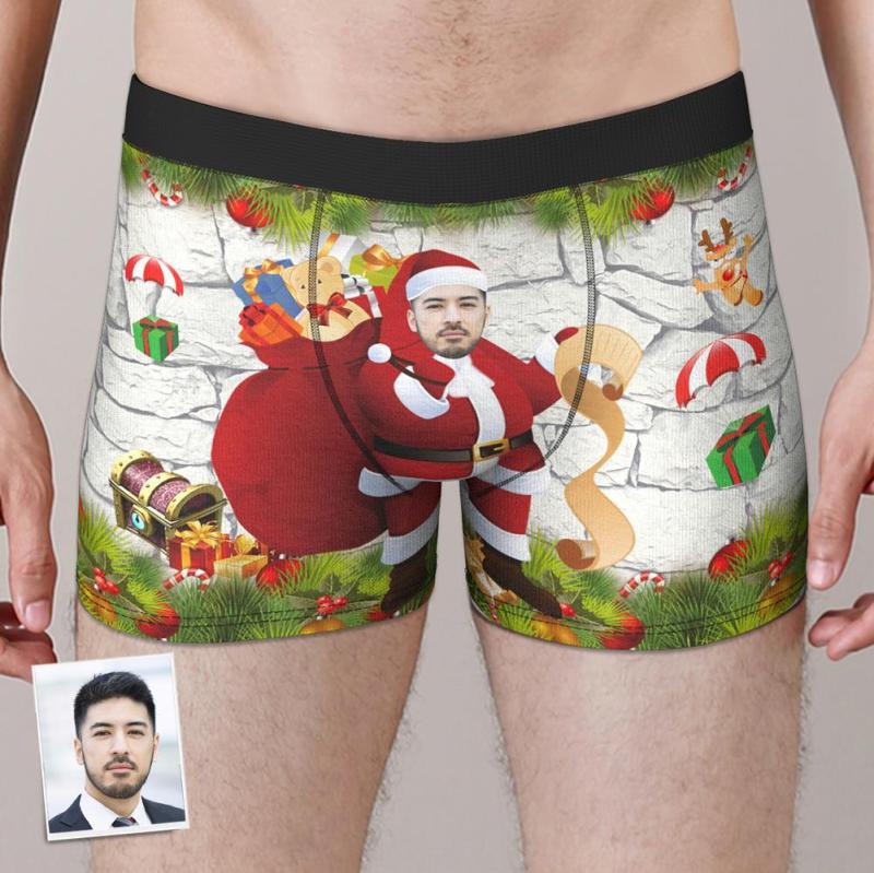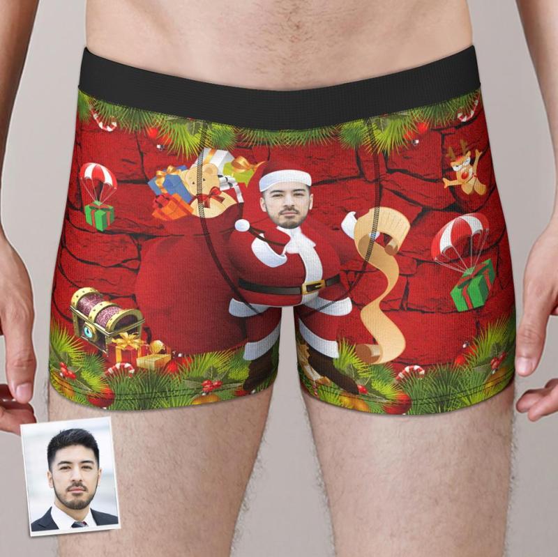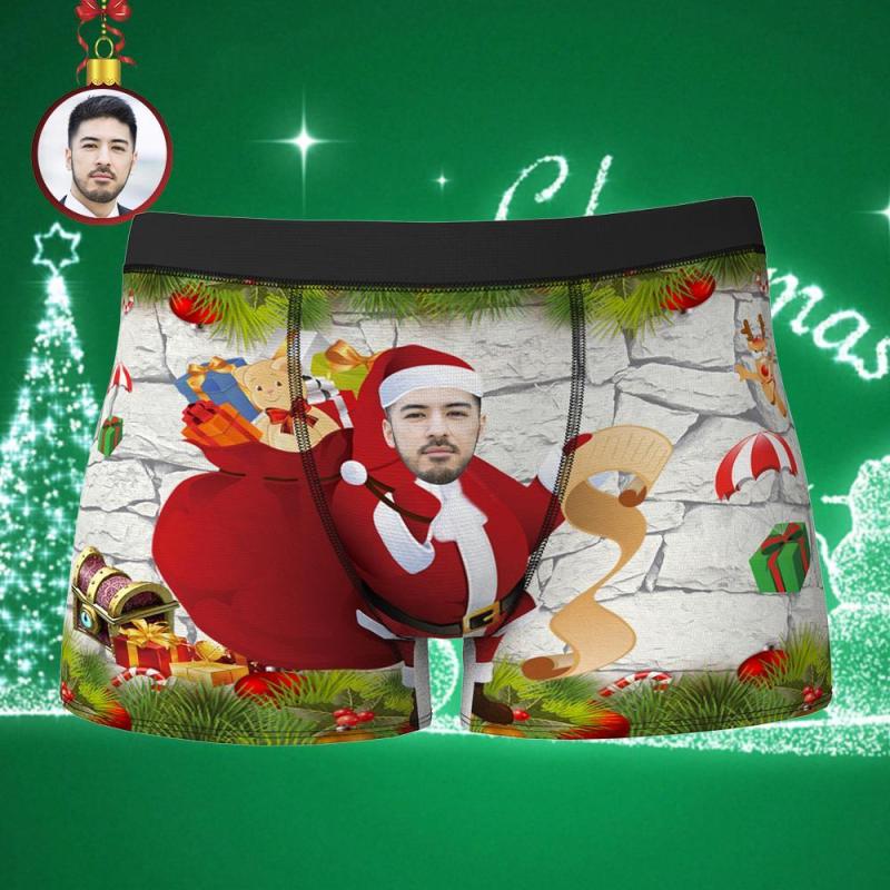 カスタムフォトボクサーパンツ-写真入れ可能なサンタ柄のクリスマス下着ギフト