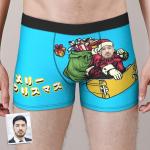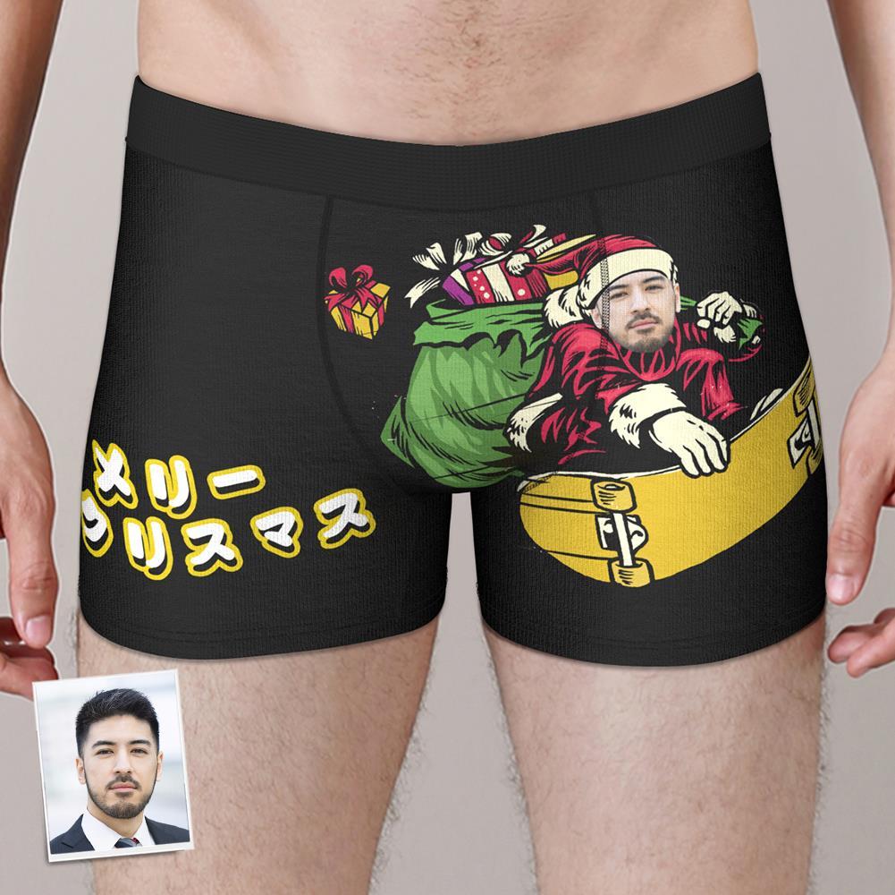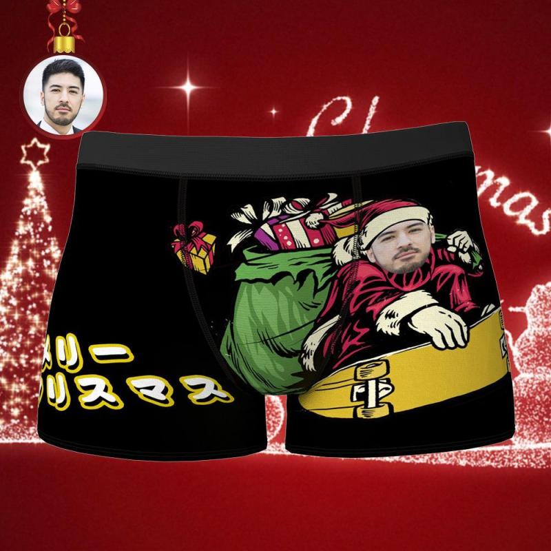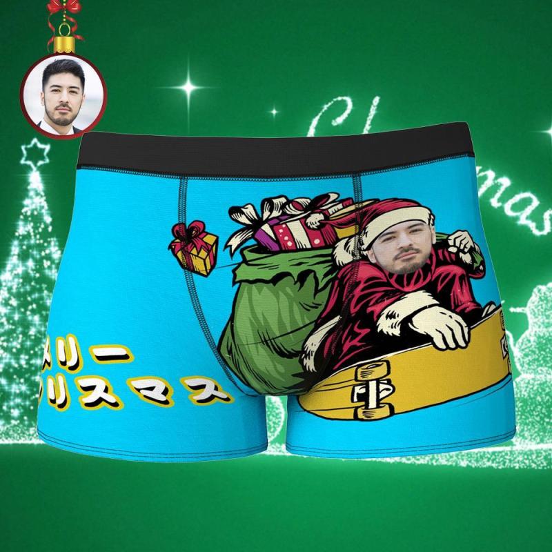 カスタムフォトボクサーパンツ-写真入れ可能なクリスマス下着ギフト-スノーボードのサンタ柄のプレゼント
