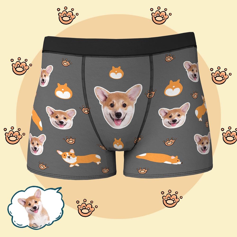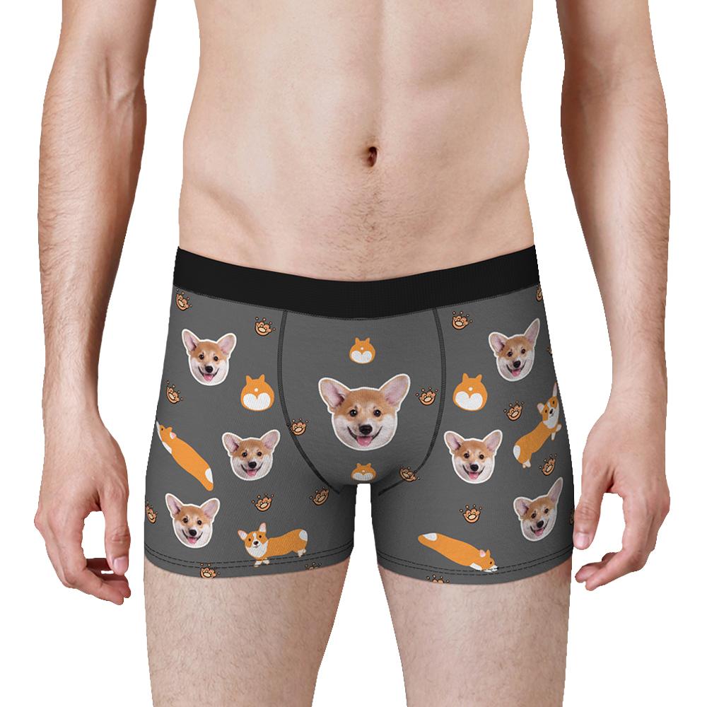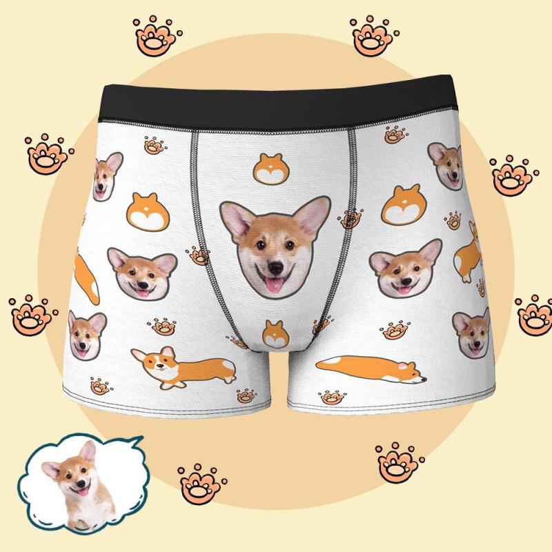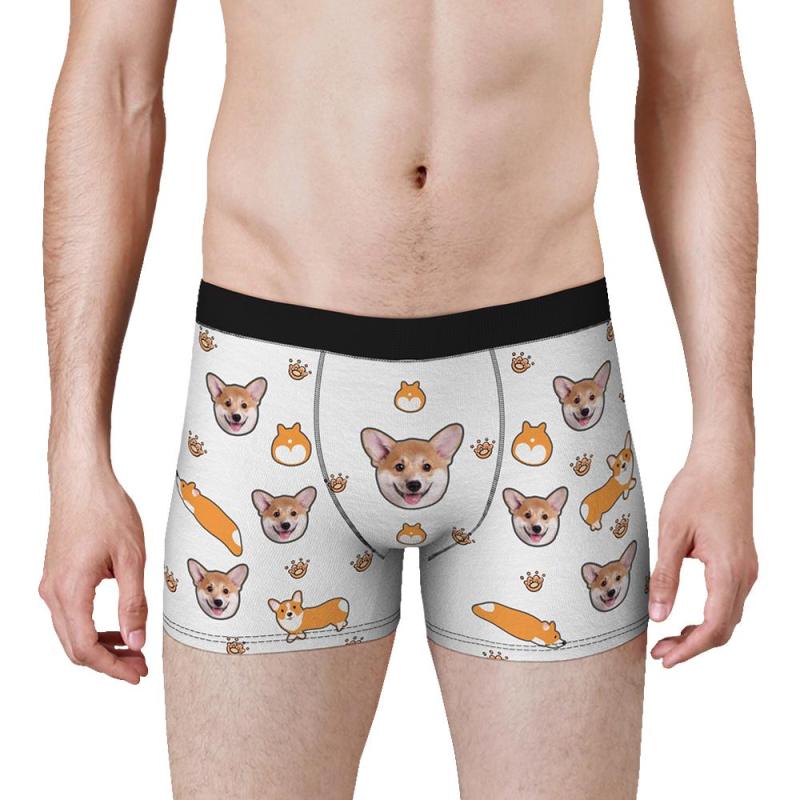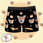 カスタム男性ボクサー-パーソナライズされた下着-ペットの顔入れ可能なコーギー犬柄のボクサーギフト