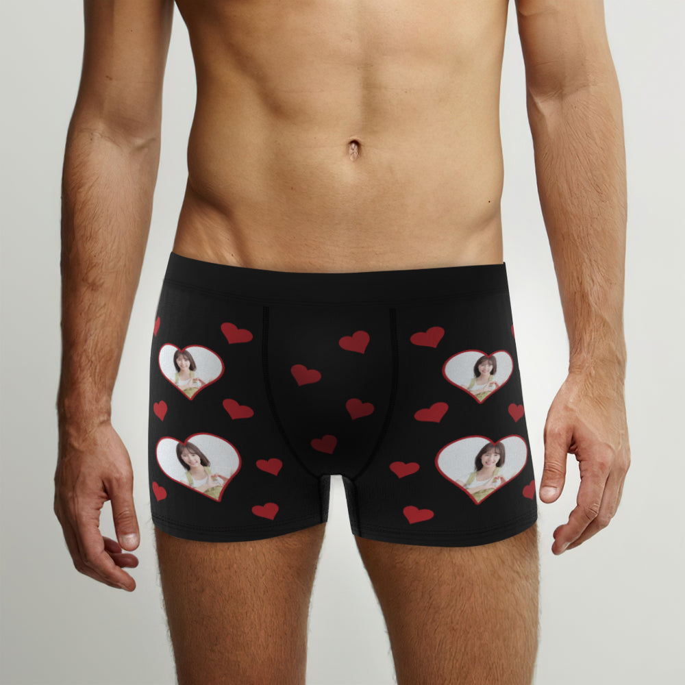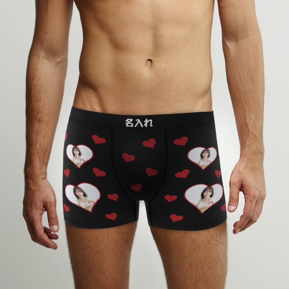 カスタム写真ボクサーパンツ-写真入れ可能なオリジナルフォト下着ショーツギフト-ハート形の写真