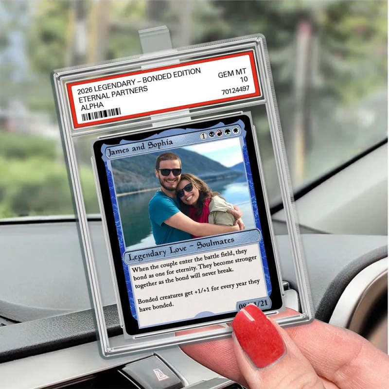 カスタムフォトファンタジートレーディングカードスタイル - パーソナライズアクリルカーバイザー - バレンタインデー,記念日の彼への贈り物,彼女への贈り物