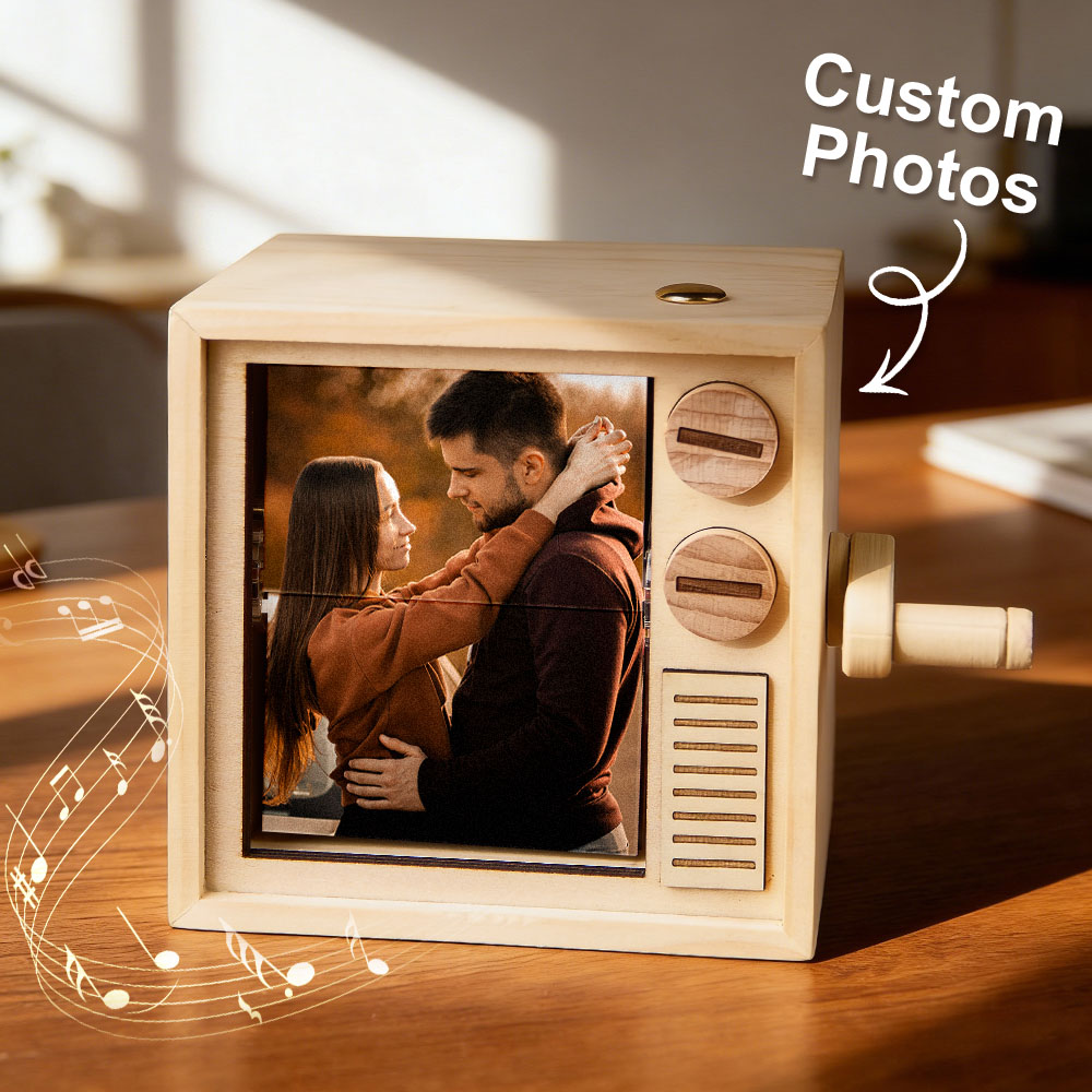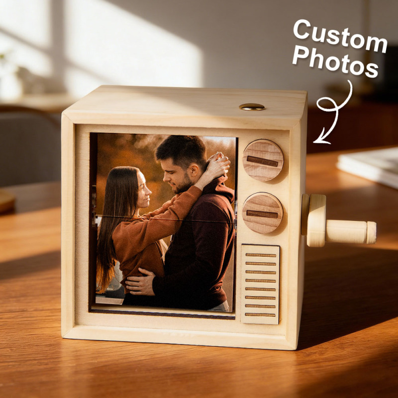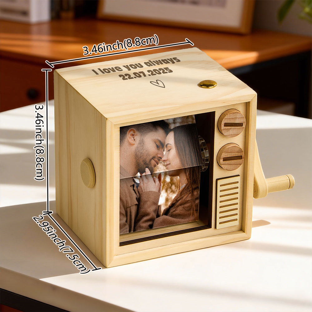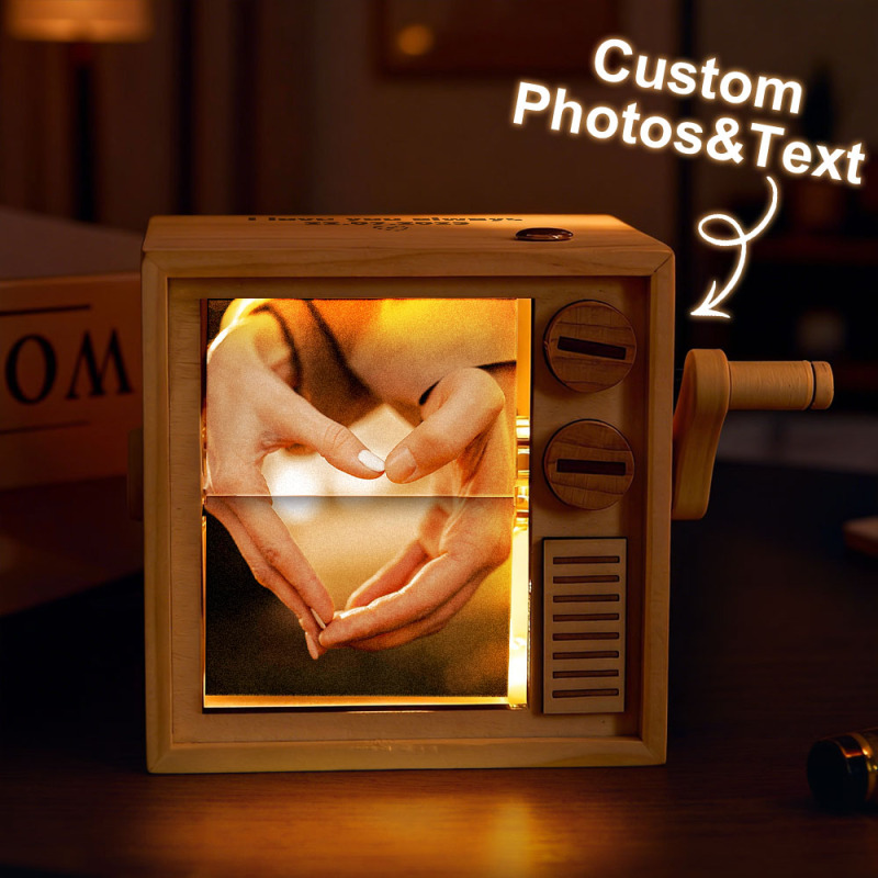 カスタムフォトフリップブックフレームアニメーションマシン機械式手回しフリップブックボックスライト付きブラックウォールナットバレンタインデーギフト