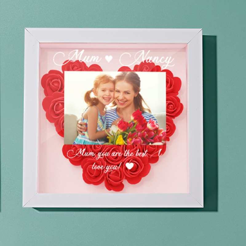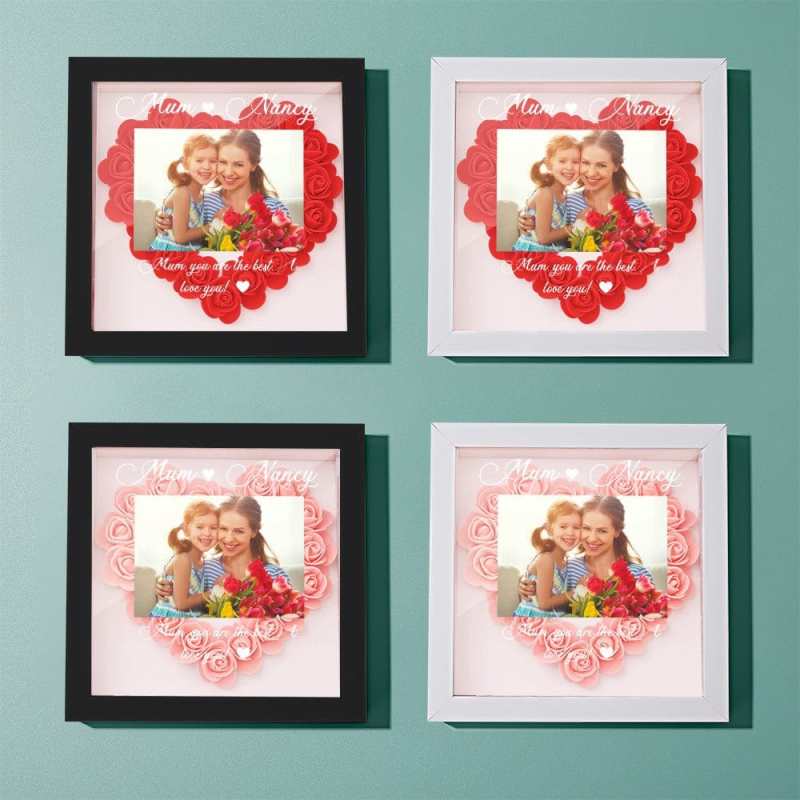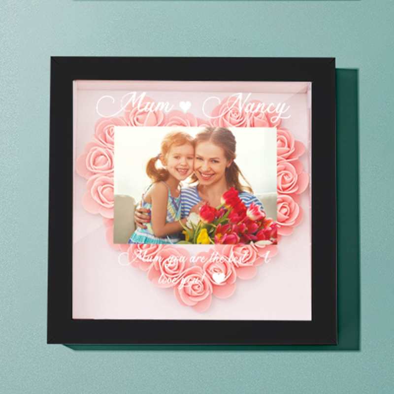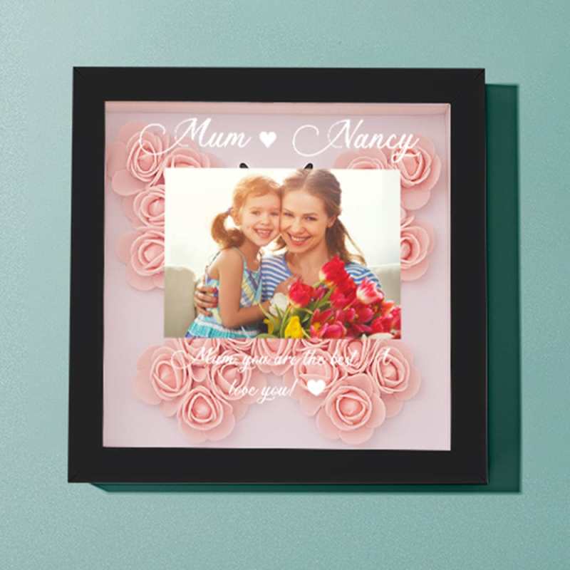 カスタムフォトフラワーシャドーボックスパーソナライズフラワーシャドーボックスフレームお母さんへのギフト